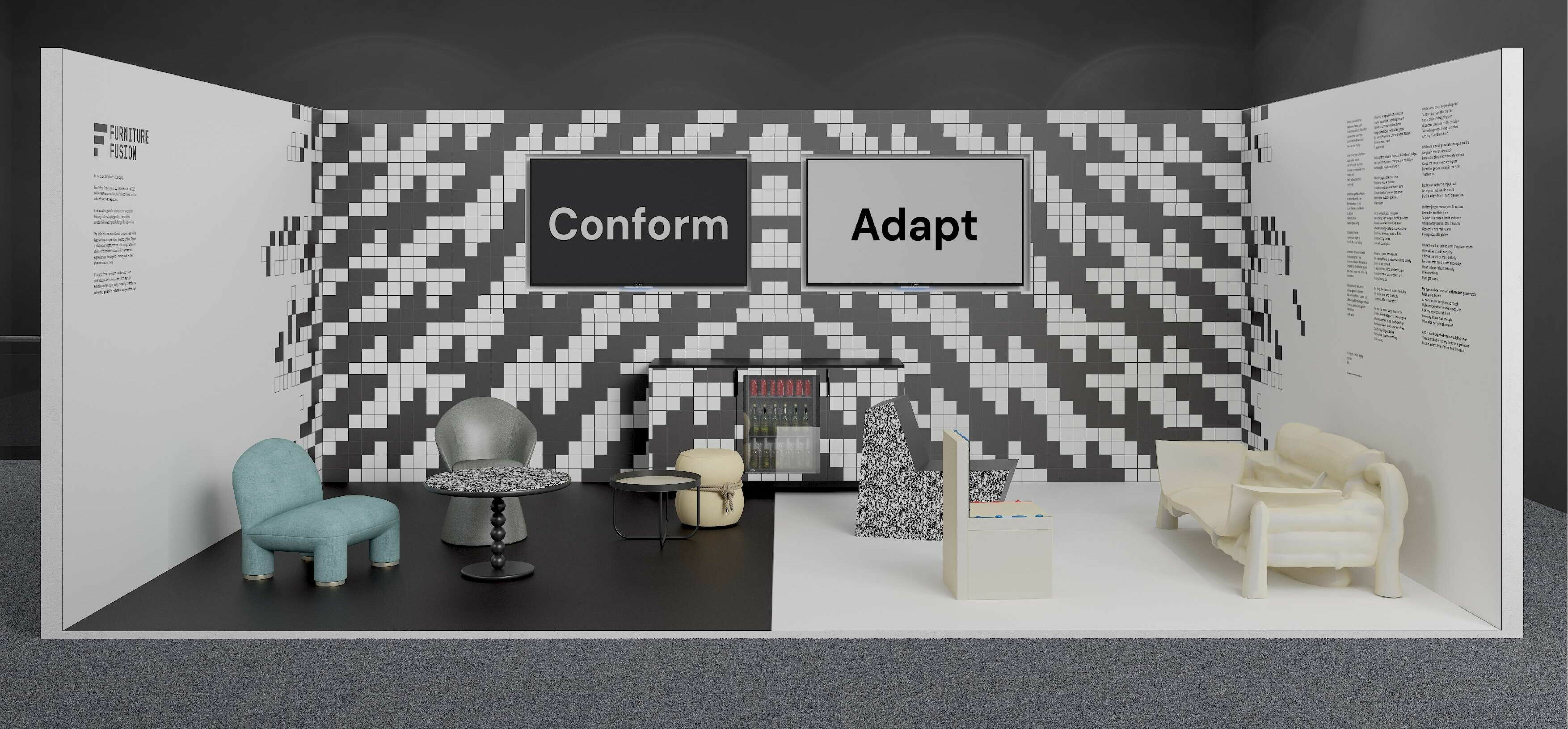 As the concept for What Else Can You Show Me? took shape, the rendering process became an essential part of turning the installation from an idea into a fully resolved experience. Working closely with Bell & Swift, we developed a series of visual studies that explored the tension between the two sides of the installation, finished versus unfinished, refined versus raw. Early renders allowed us to test the monochrome palette, experiment with spatial layout and refine how the two opposing worlds would sit in deliberate friction with one another. As the visuals evolved, so did the narrative: the glue-seeping chair, the neon-cut foam, the exposed sofa structure all emerged through rounds of iterative sketching, 3D modelling and collaborative critique.