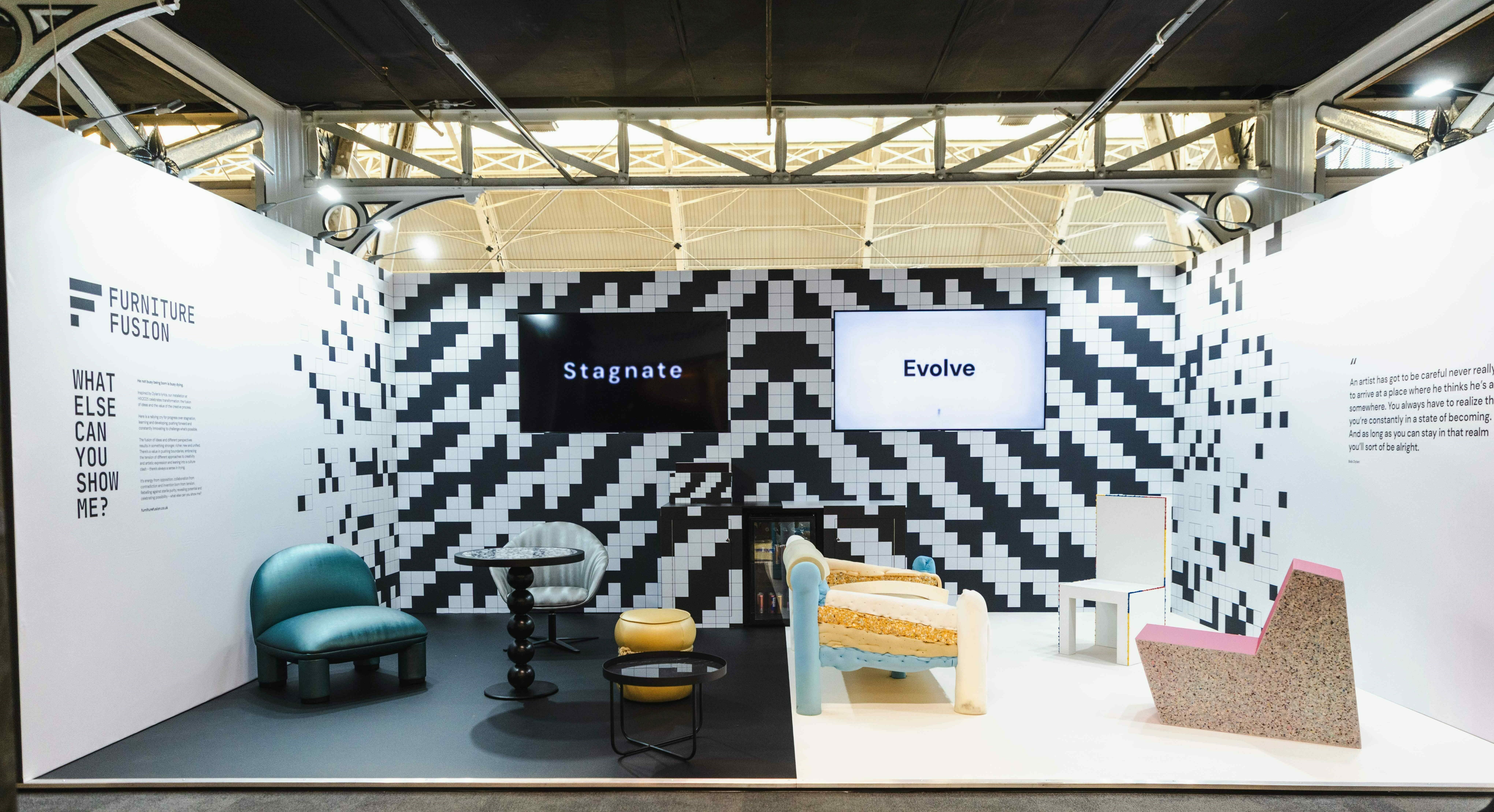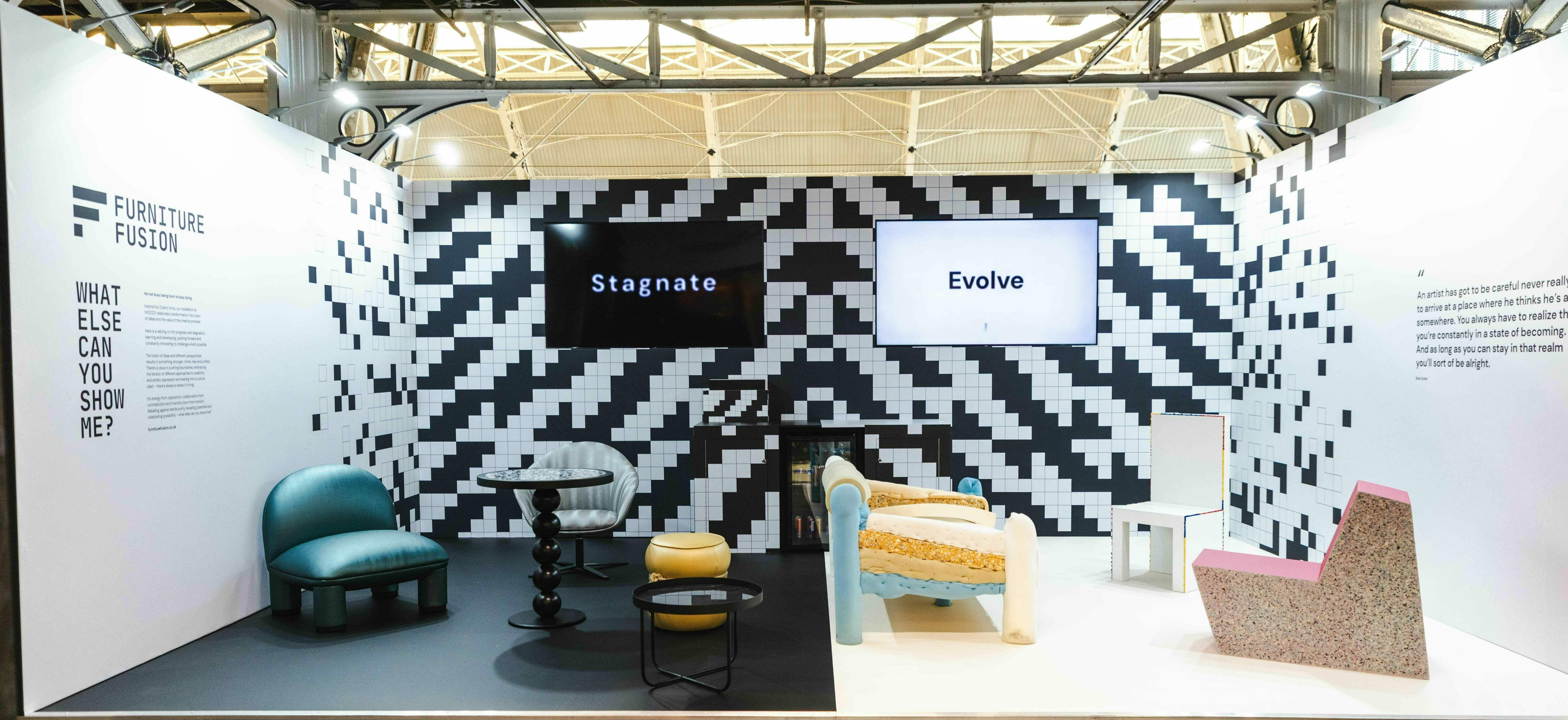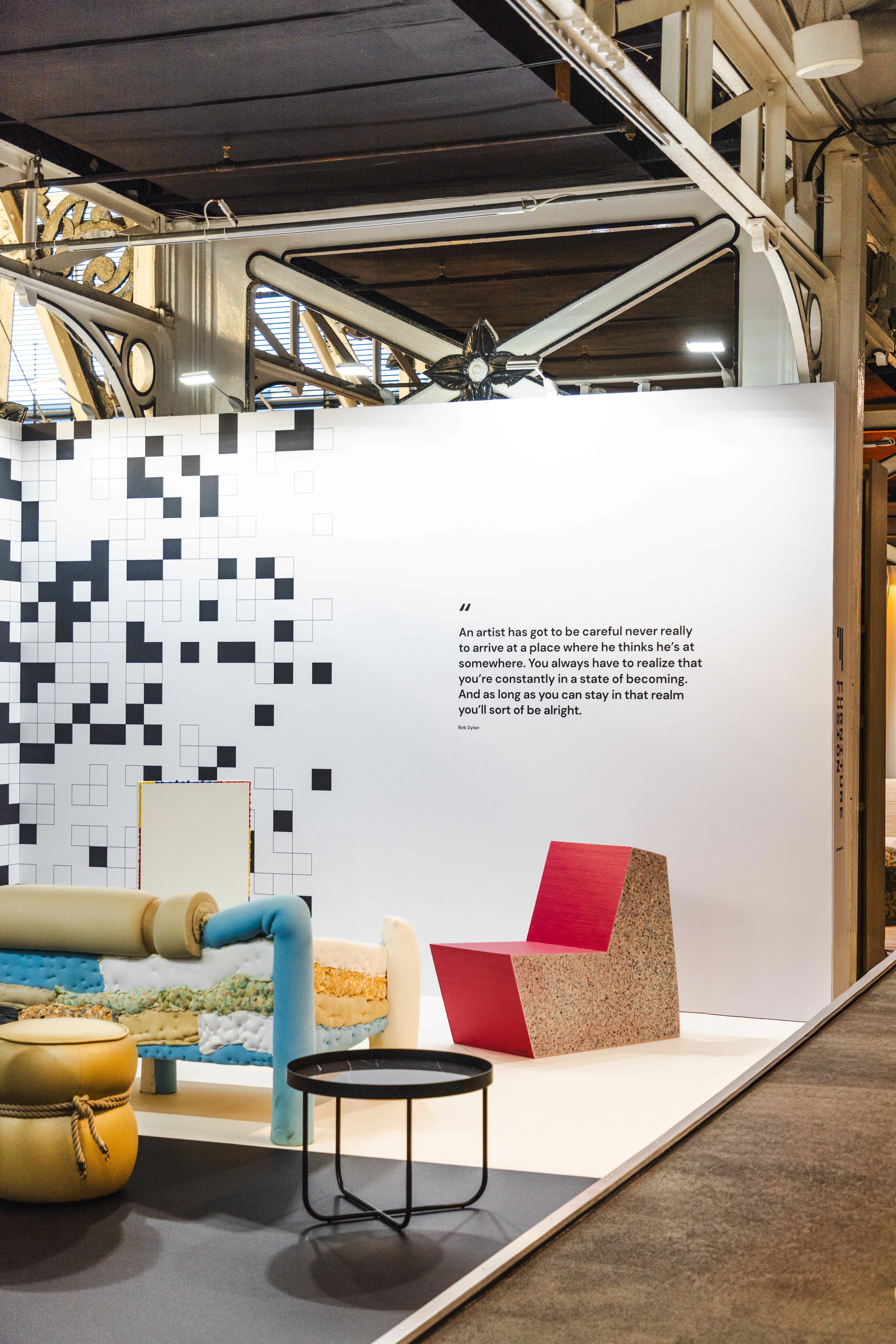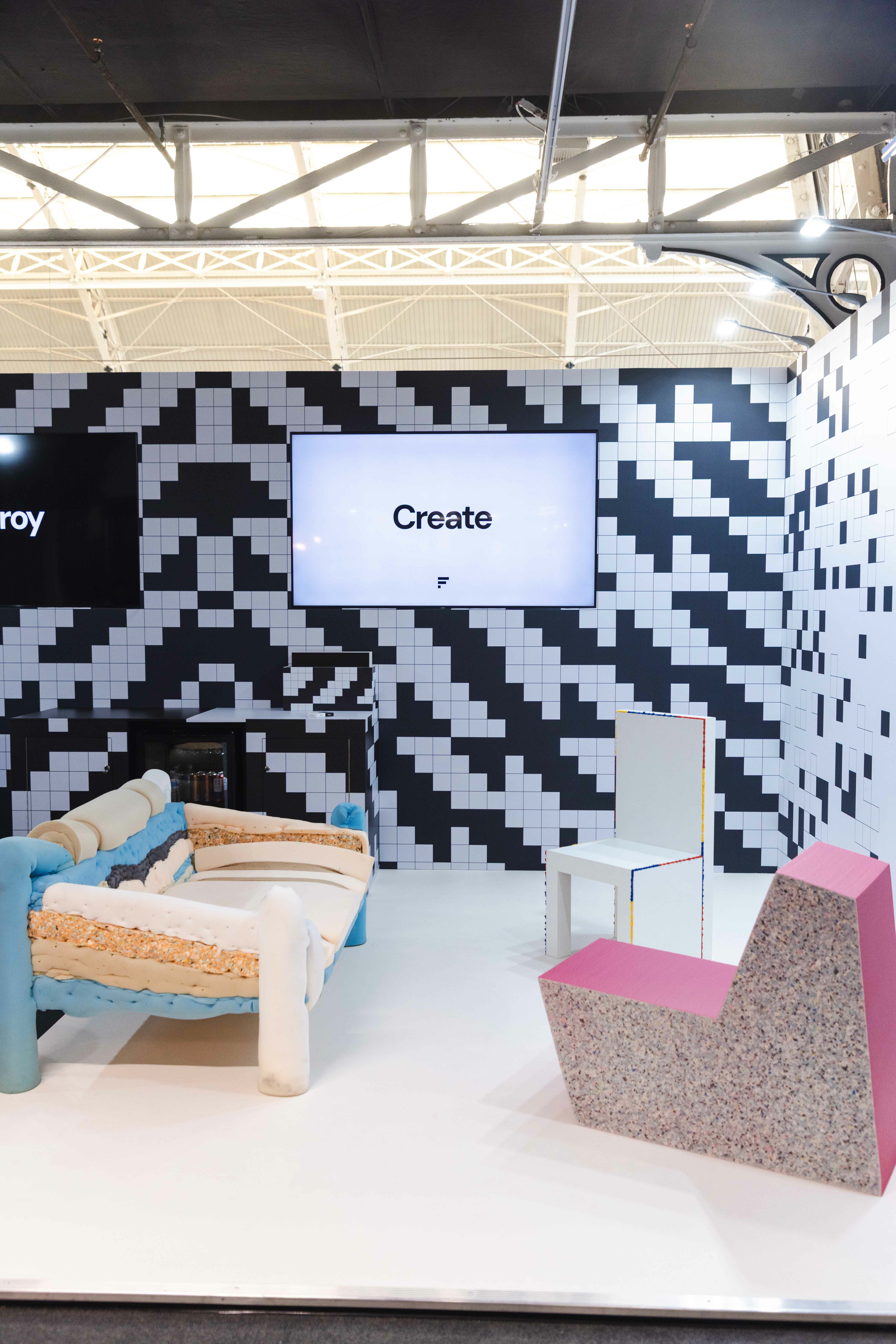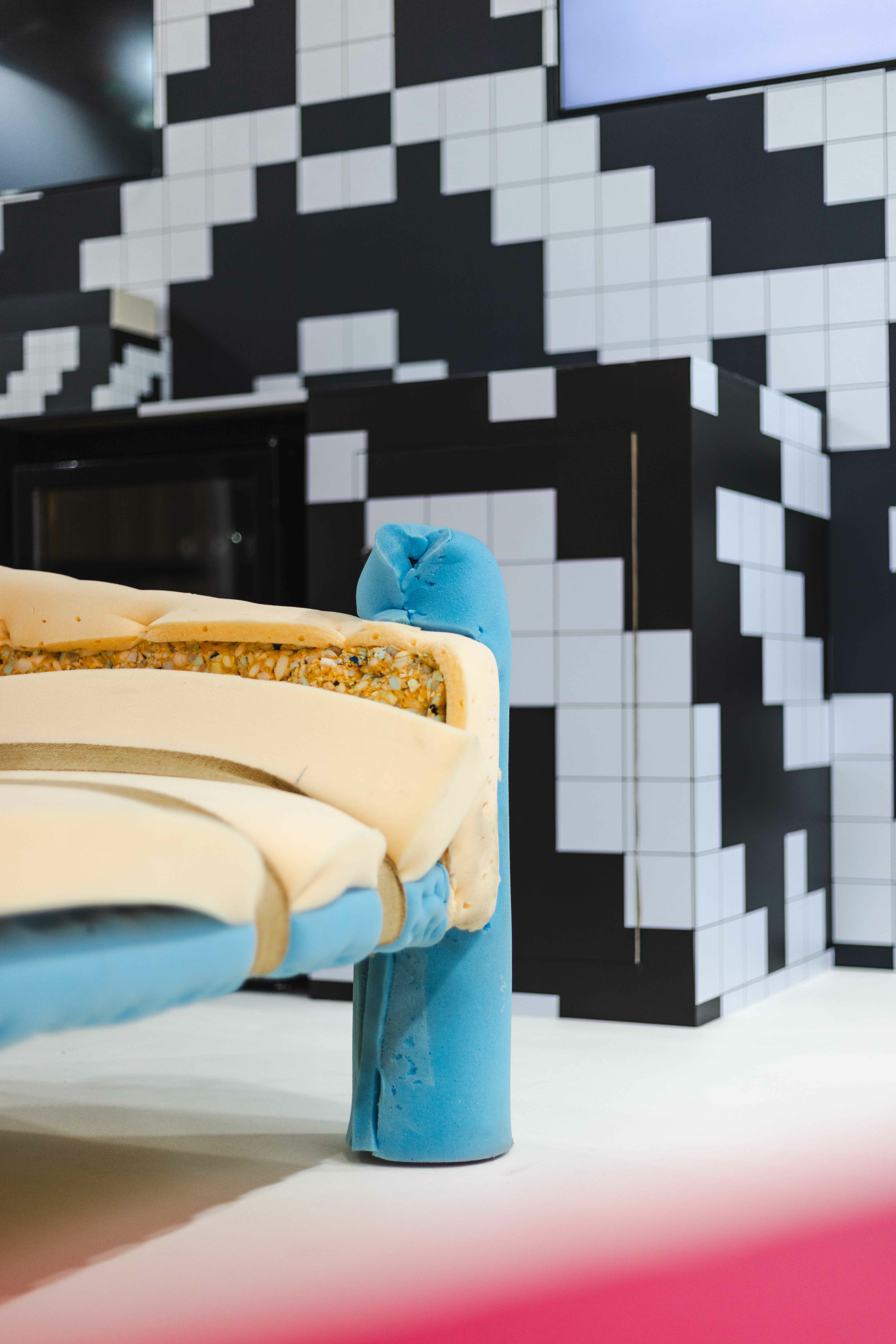 One side of the installation uses finished pieces of furniture, selected for HIX 2025 in collaboration with design studio Bell & Swift, while the other side features unfinished bespoke pieces which were designed and created for the event. They are deliberately unsettling, provocative, uncomfortable - glue oozing from the joints of a chair, brash neon paint on raw foam cut to create an angular chair. The unfinished sofa reveals the unseen structure below a polished piece. There are possibilities in each, with the opportunity to create something different and better