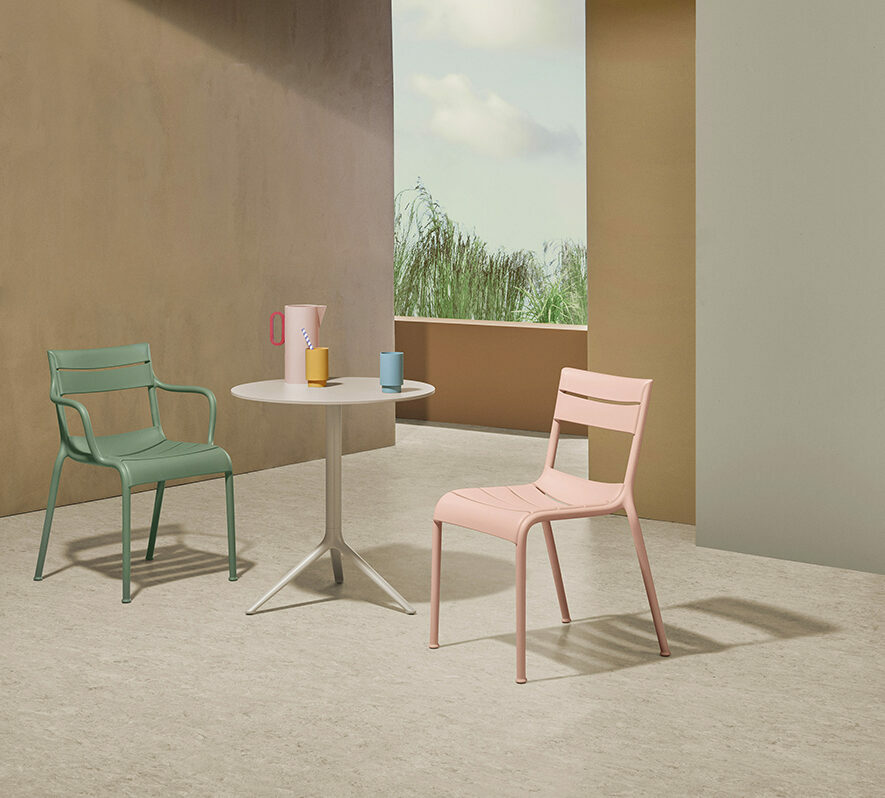 The Souvenir Armchair and Side Chair (below) reinterpret the iconic shapes of seating used in Parisian gardens in the 18th century. Bringing a contemporary edge to the elegant, flowing lines that inspired it, Souvenir is stylish, stackable and so comfortable - a perfect choice for any outdoor space this summer. Choose from seven colours.