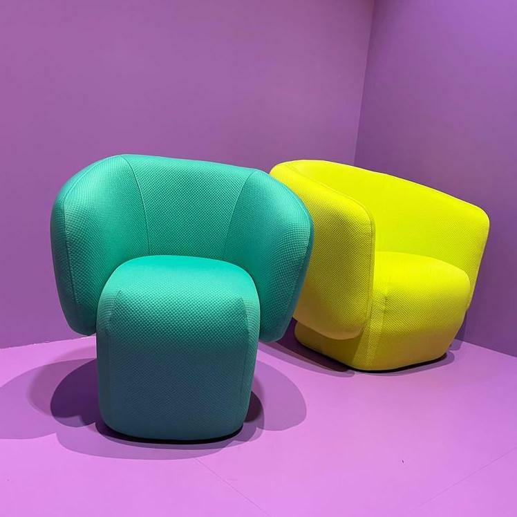 Colour went hand-in-hand with curves as the standout shape of the show - from oversized oval tables and chunky modular sofas, to sleek side chairs. We loved the rounded form of these lounge chairs - a real statement piece for a funky bar or lobby, we can confirm they’re also incredibly comfortable and really made an impact in the busy exhibition space.