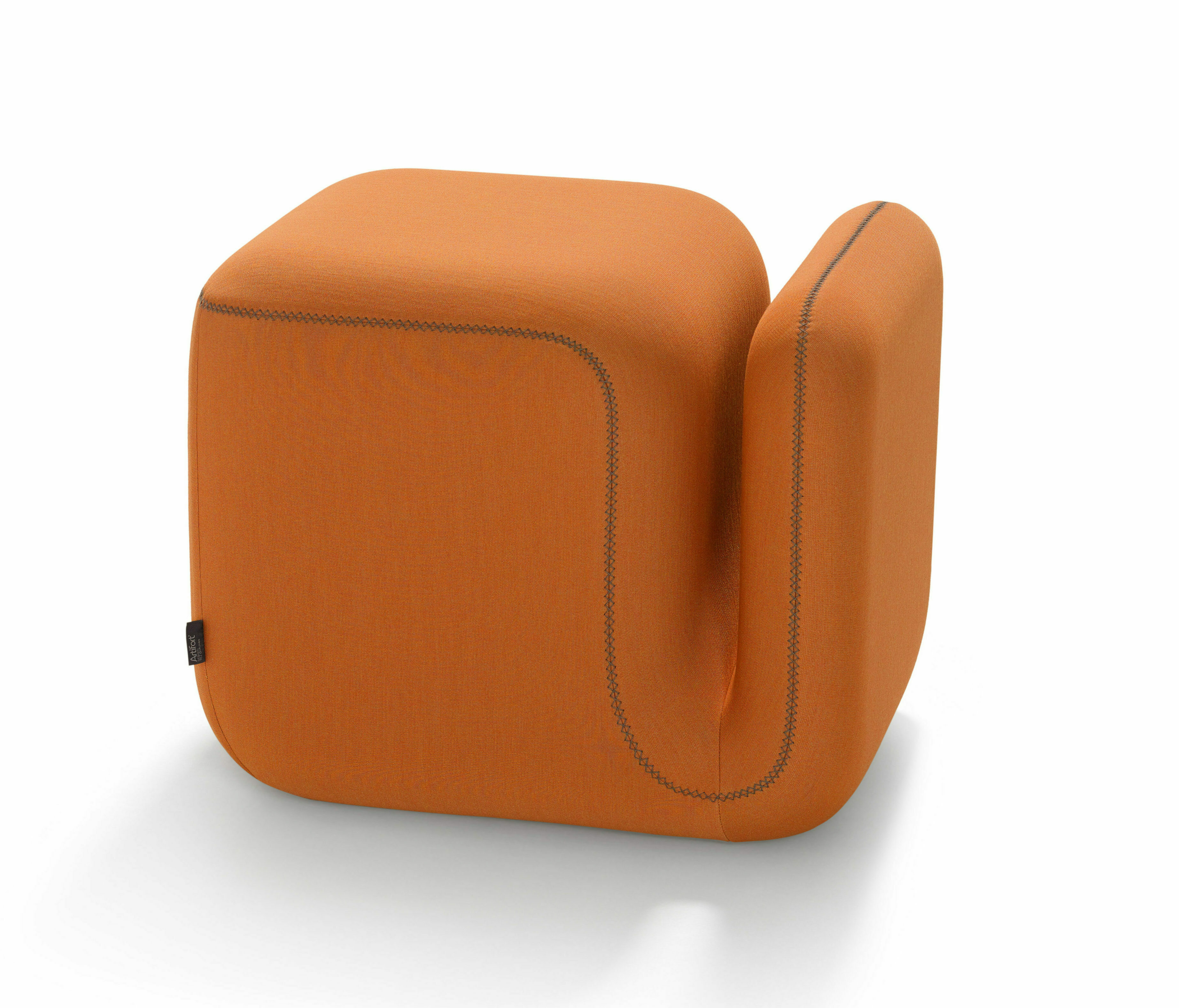 Rounded volume at floor level gives a chill-out effect to our Duo collection. Sculpted seat and back cushions give a welcoming effect, with wenge-stained beech wood legs barely visible due to the clever design. Combine armchairs, corner units, terminal modules and pouf to create a circular or semi-circular seating area upholstered in a wide range of fabrics and leathers.