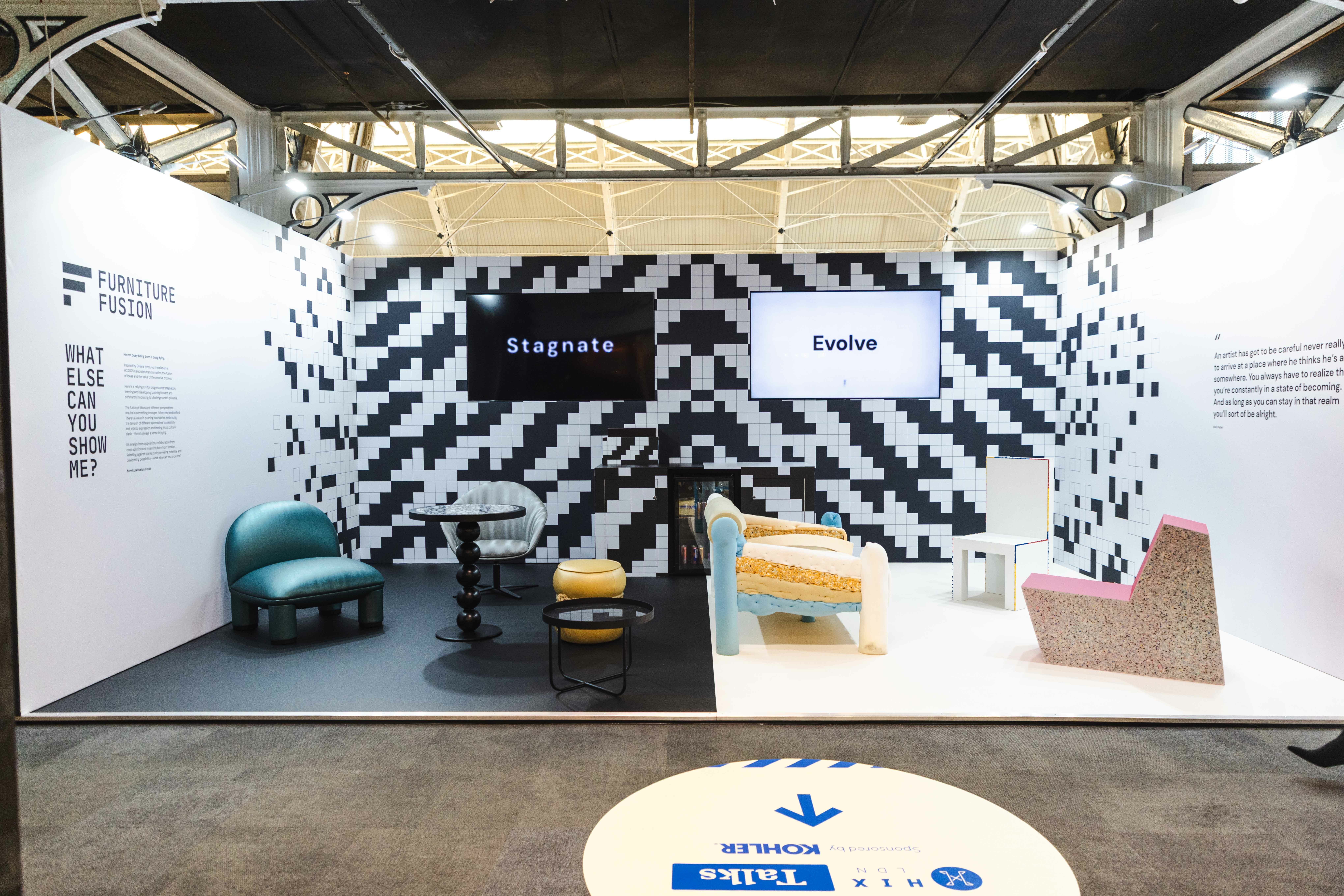 Our recent installation for HIX London felt like a bit of a risk - and indeed was the result of some early false starts and ideas which fell by the wayside once we’d discussed them more deeply. But a false start can lead to a stronger finish and by being brave we think that the final product was more interesting, more engaging and more creative. It didn’t have to be perfectly polished but it did pique curiosity and provoked conversation and connections, which was our aim all along. The bespoke furniture we created for the installation was a deliberate counterpoint to the perfect pieces selected for the opposing side of the stand - an angular armchair and sidechair complete with visible oozing glue. The standout piece was a sofa which exposed the typically unseen construction that lies beneath finished furniture. This became a conversation piece which sparked discussion and generated new ideas - just what we’d hoped when we first considered the installation months earlier.