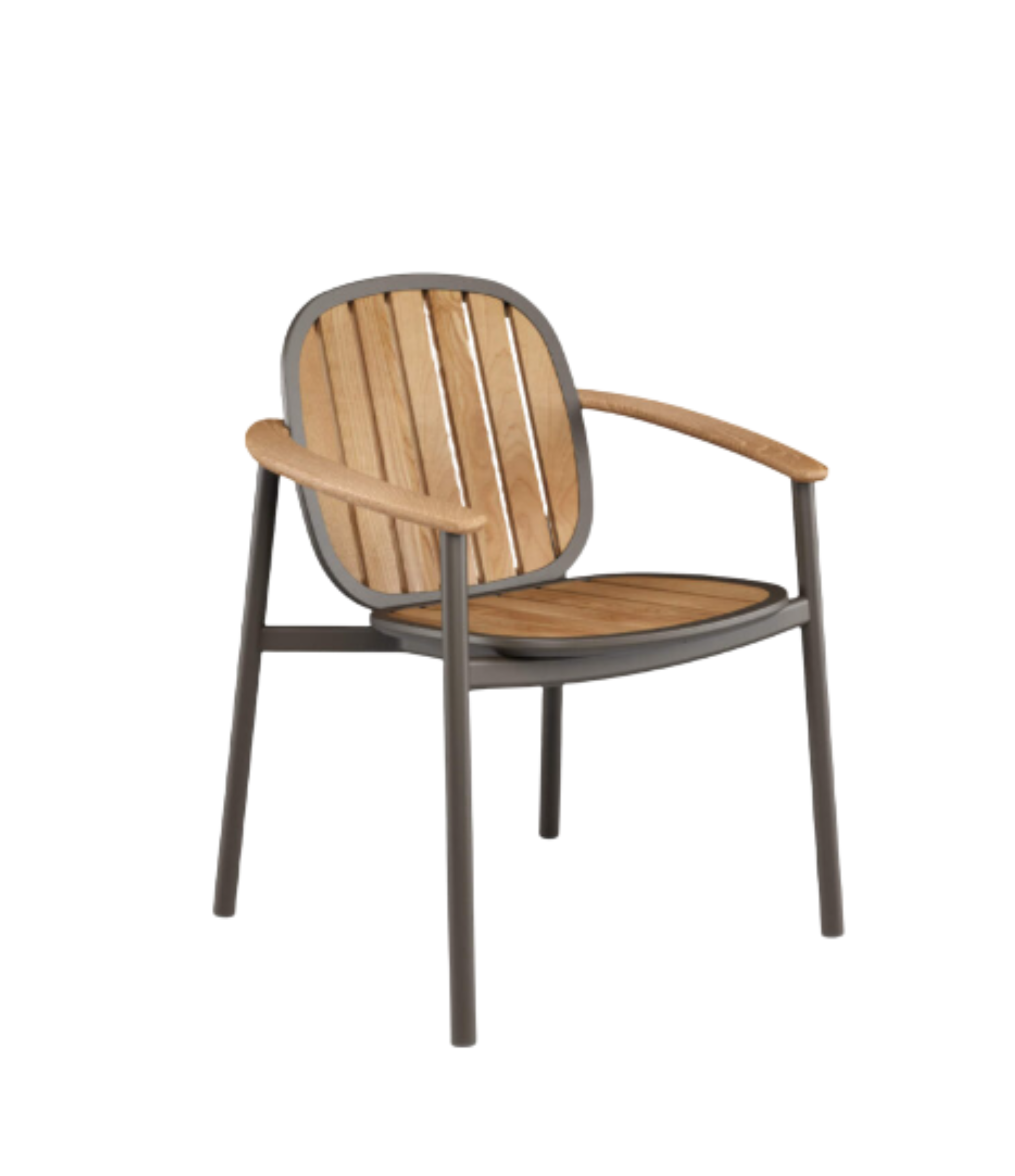 The new Twins collection includes an armchair, side chair, sofa, tables and this laidback lounge chair, all available in two versions: one made entirely of teak, the other in teak with aluminium frame and detailing. The frame comes in a choice of five colours which all work perfectly with the beautiful natural wood.