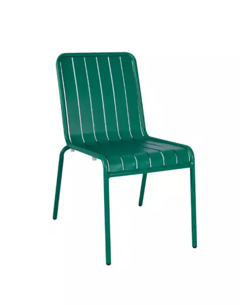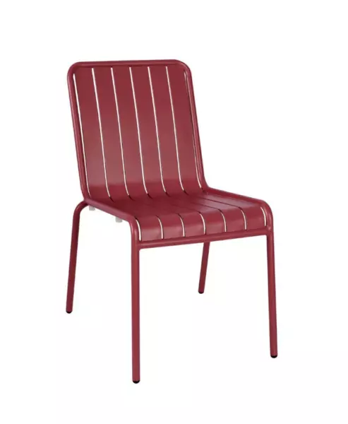 The Biarritz collection includes a stackable side chair and armchair, both made from powder-coated aluminium in a choice of brick red, emerald green, stone grey or classic black. The vertical slatted design sits perfectly in a contemporary café, bar or restaurant.