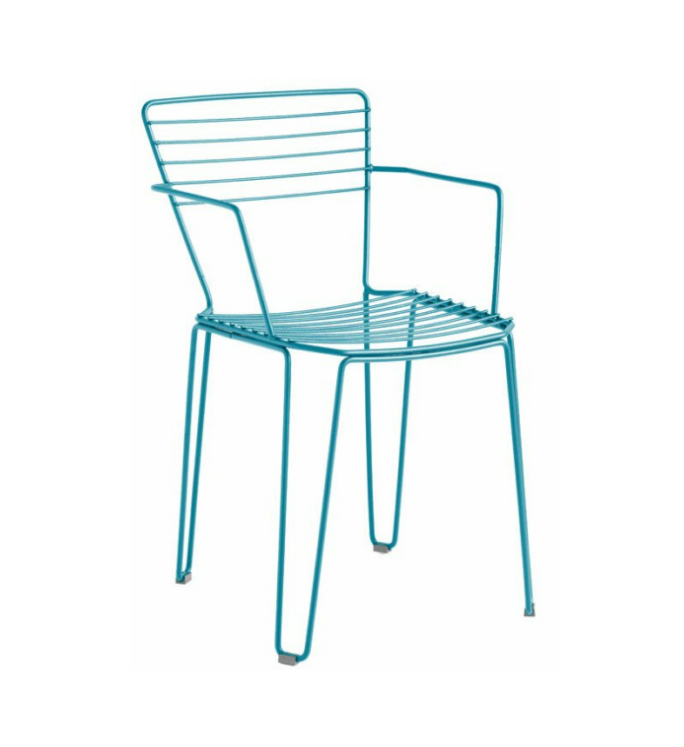 The new Menorca armchair is reminiscent of traditional Spanish outdoor seating, made of galvanized steel in a choice of colours and designed specifically for outdoor use. From Geranium Red and Turquoise Blue to sunshine yellow, there’s a shade to suit every space.