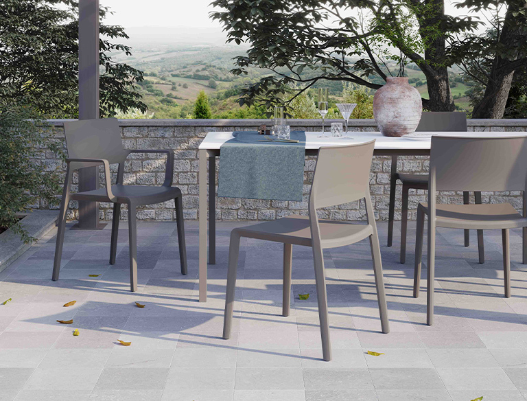 In contrast, the Ara collection showcases clean, contemporary styling, with a lounge chair, side chair and armchair all made from polypropylene reinforced with fibreglass. This results in a lightweight yet strong construction - including a handle in the back which makes it easy to move and stack, it’s a great choice for an outside terrace, bar or café where flexibility and practicality is required.