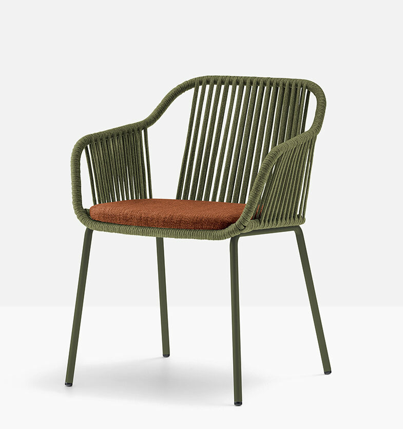 The Lilibet collection does double-duty, suitable for use both indoors and outside. Available as an armchair or side chair and in a range of colours, three of which are made from environmentally-friendly materials and fully recyclable.