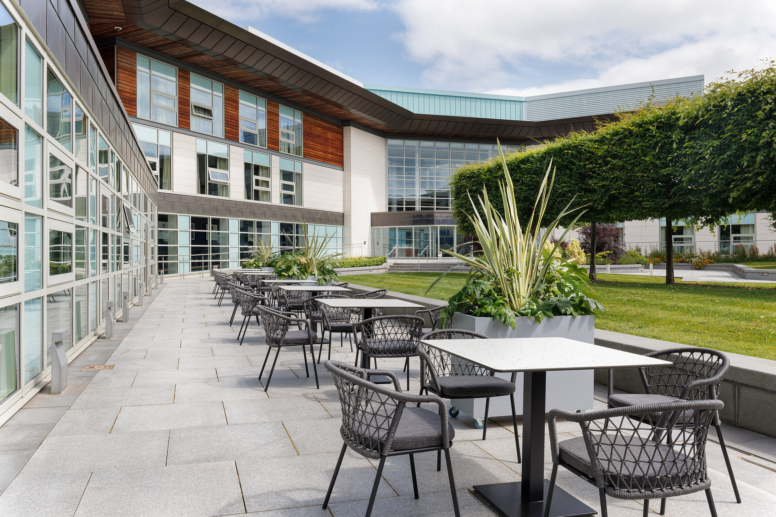 Our project at St George’s Park included bespoke seating for a stylish executive lounge, a meeting and events space and also the hotel’s terrace. A perfect spot for guests to relax, unwind and enjoy drinks or dinner, it was important to include seating that’s both comfortable and practical. The Panarea armchair ticks both boxes and was supplied here in a chic steel grey which sits perfectly alongside the lush green of the landscaped grounds.