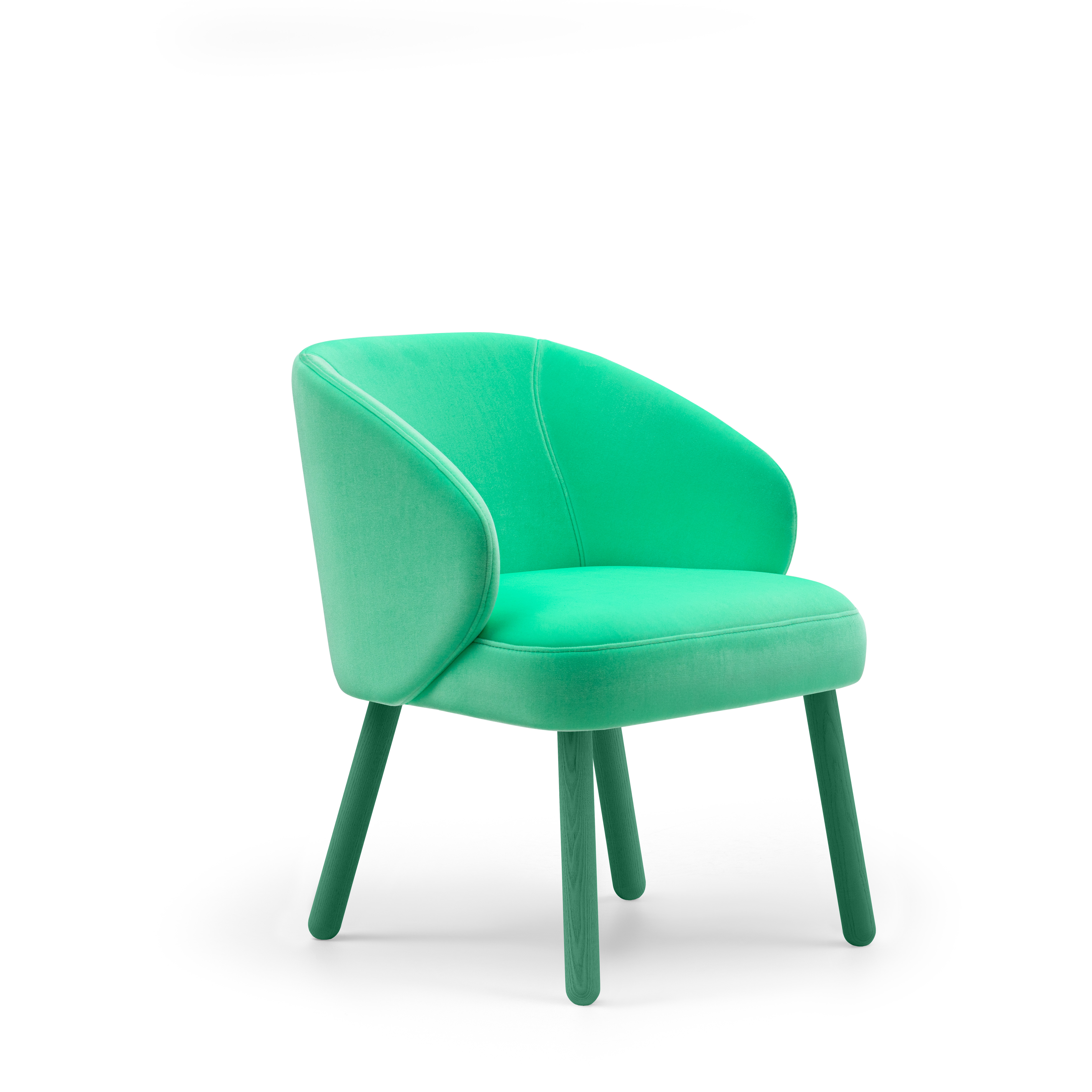 The Cora family of armchairs gives options for leg style and size, finish, colour and shape - whether sleek powder-coated metal legs or playfully rounded wooden legs stained to the same shade as the seat and backrest upholstery. This mint green version would look great in a funky bar or restaurant or choose your own fabric to finish.