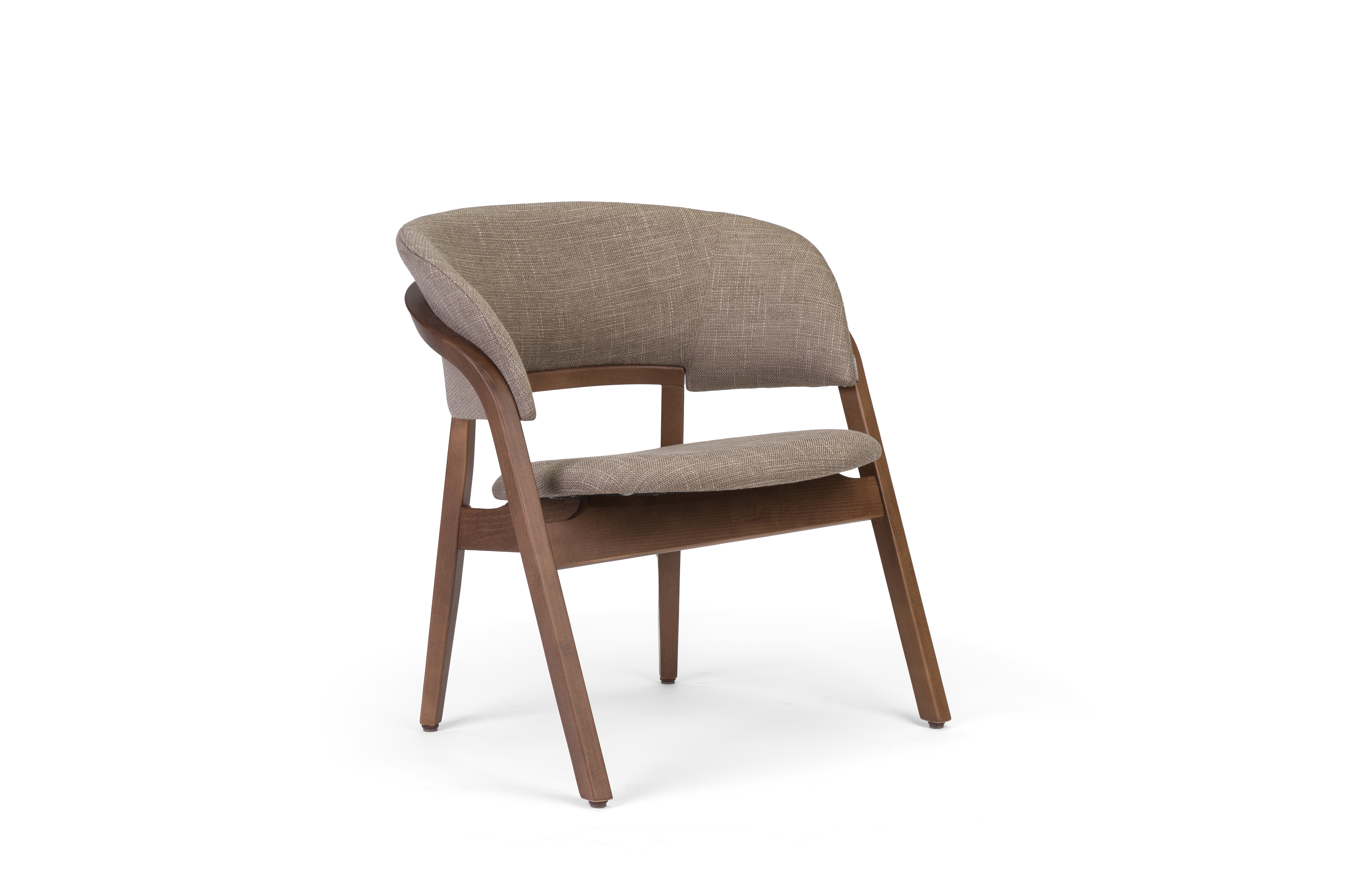 The Nur armchair really celebrates the beauty of wood - the sleek, streamlined frame is the most distinctive part of the design, with elegantly tapered legs and a gently curved backrest. The soft padded seat means it offers real comfort too - perfect for a restaurant, café or bar.