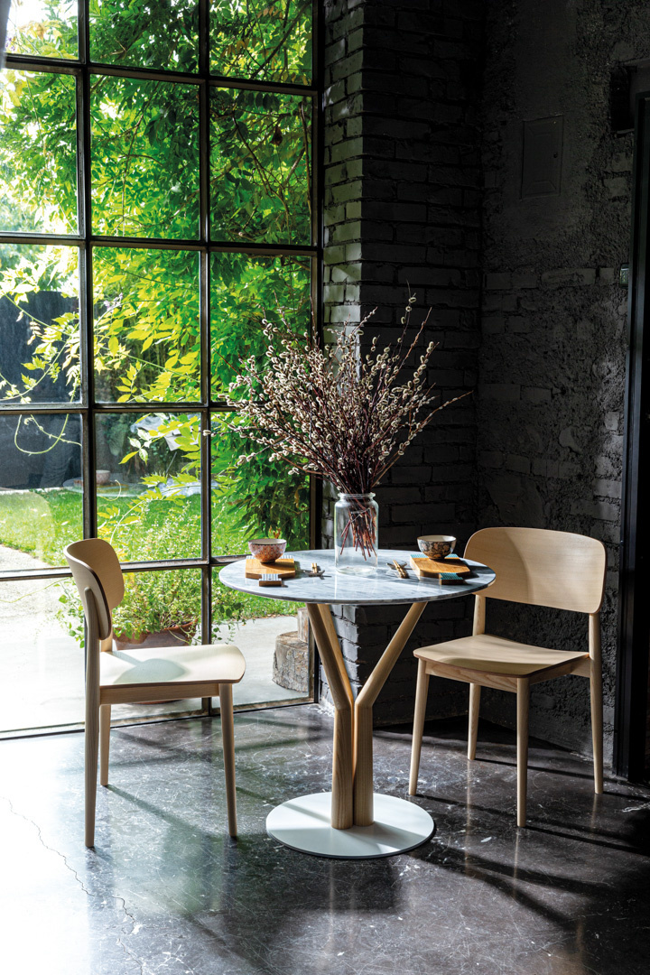 The Suau side chair shares the same options for leg styles, with a distinctive gently curved seat and backrest and generous cushioning. Choose legs in a contrasting colour or keep a harmonious feel - the perfect balance of informality and elegance.