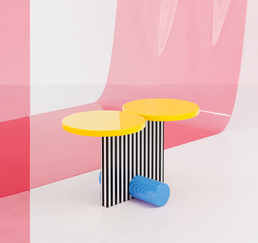 The group's work often incorporated plastic laminate and terrazzo materials, characterised by colourful designs, abstract and geometrical shapes that rejected the bland austerity of Modernism.