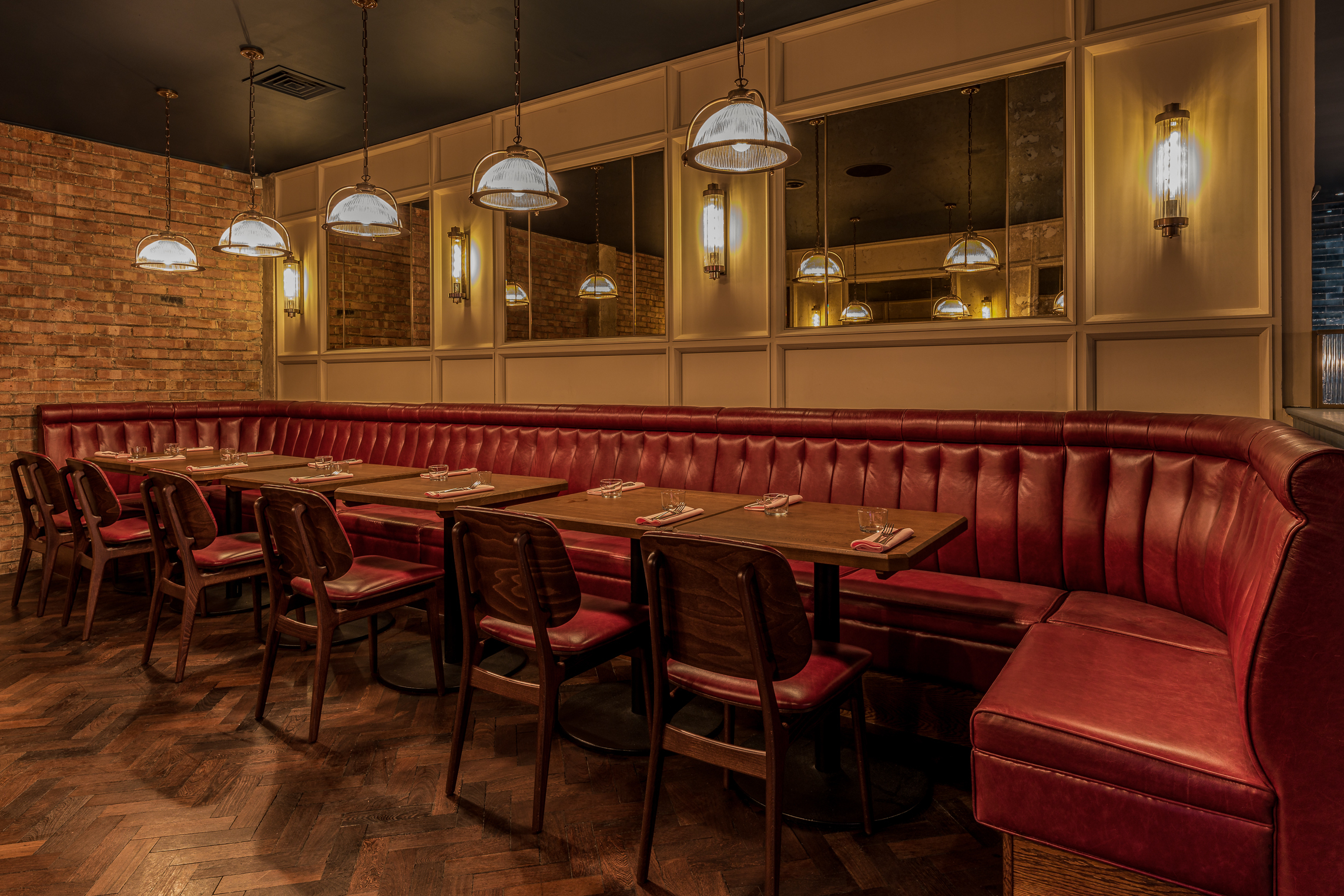 The Chloe Side Chair looks brilliant in burgundy with a bespoke button detail, for our programme of projects with Burger & Lobster.