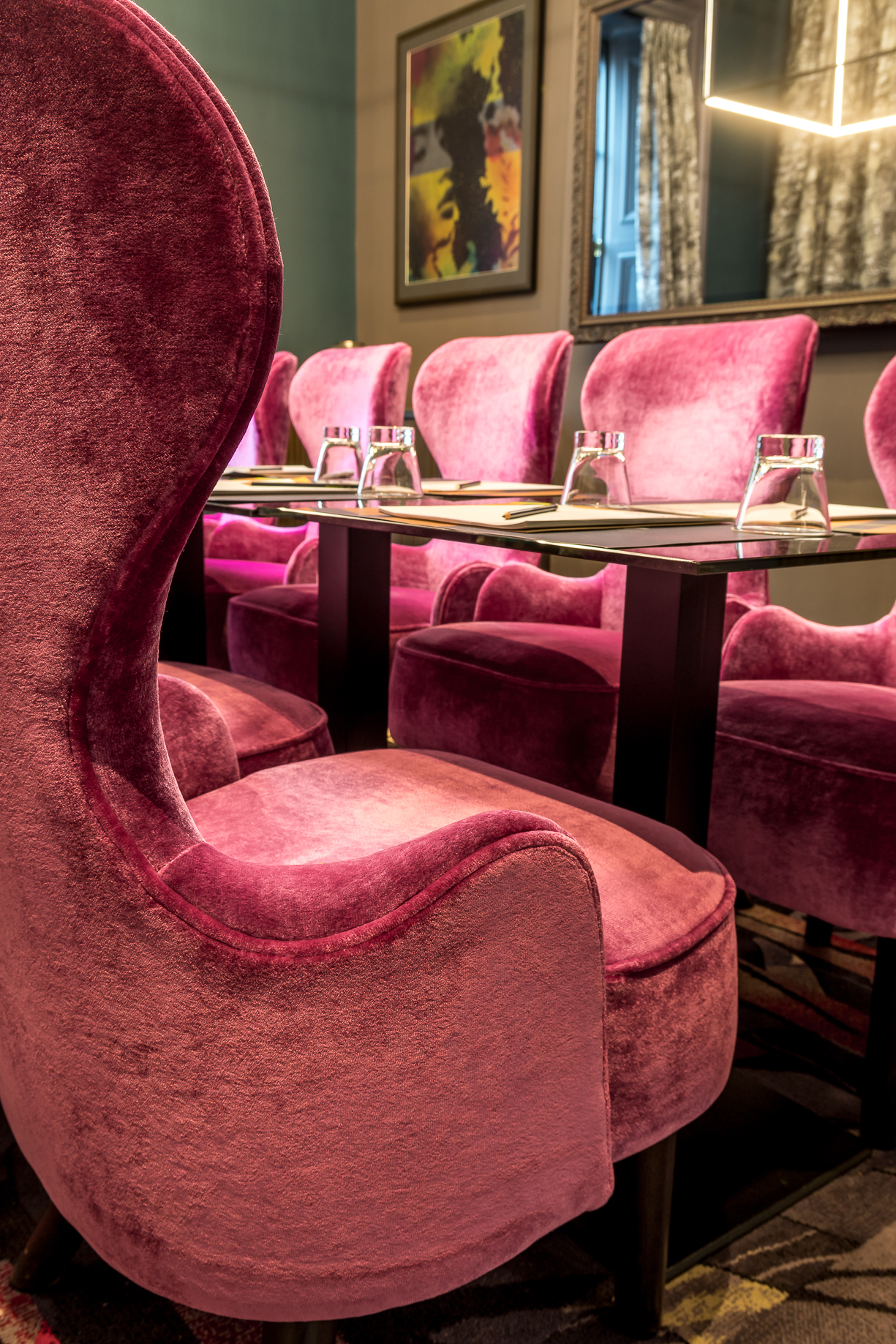 We loved working on this project to supply much of the furniture for the site - like our Elle Side Chair, which plays a central part in the Mal Brasserie. Upholstered in a rich, ruby red velvet and finished with brass stud detail, it’s a piece which suits Malmaison’s sleek, opulent look perfectly.