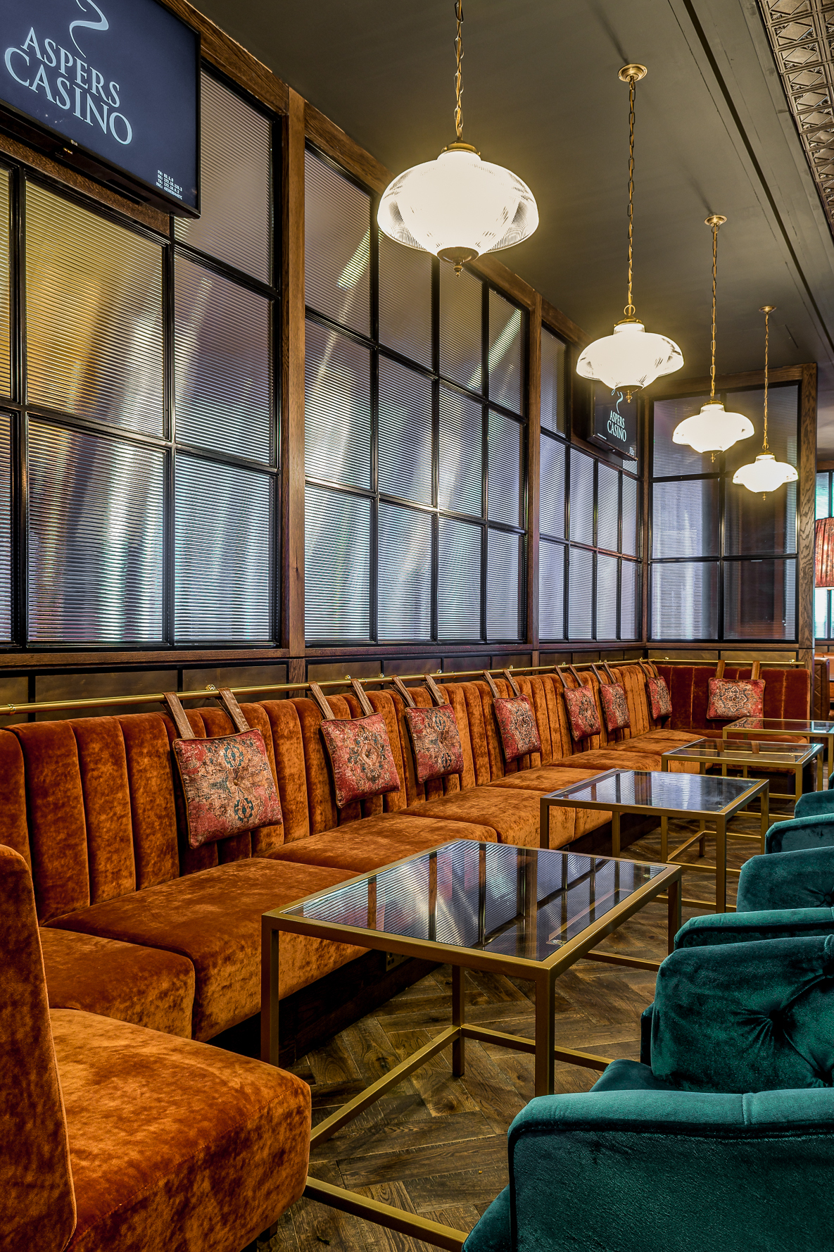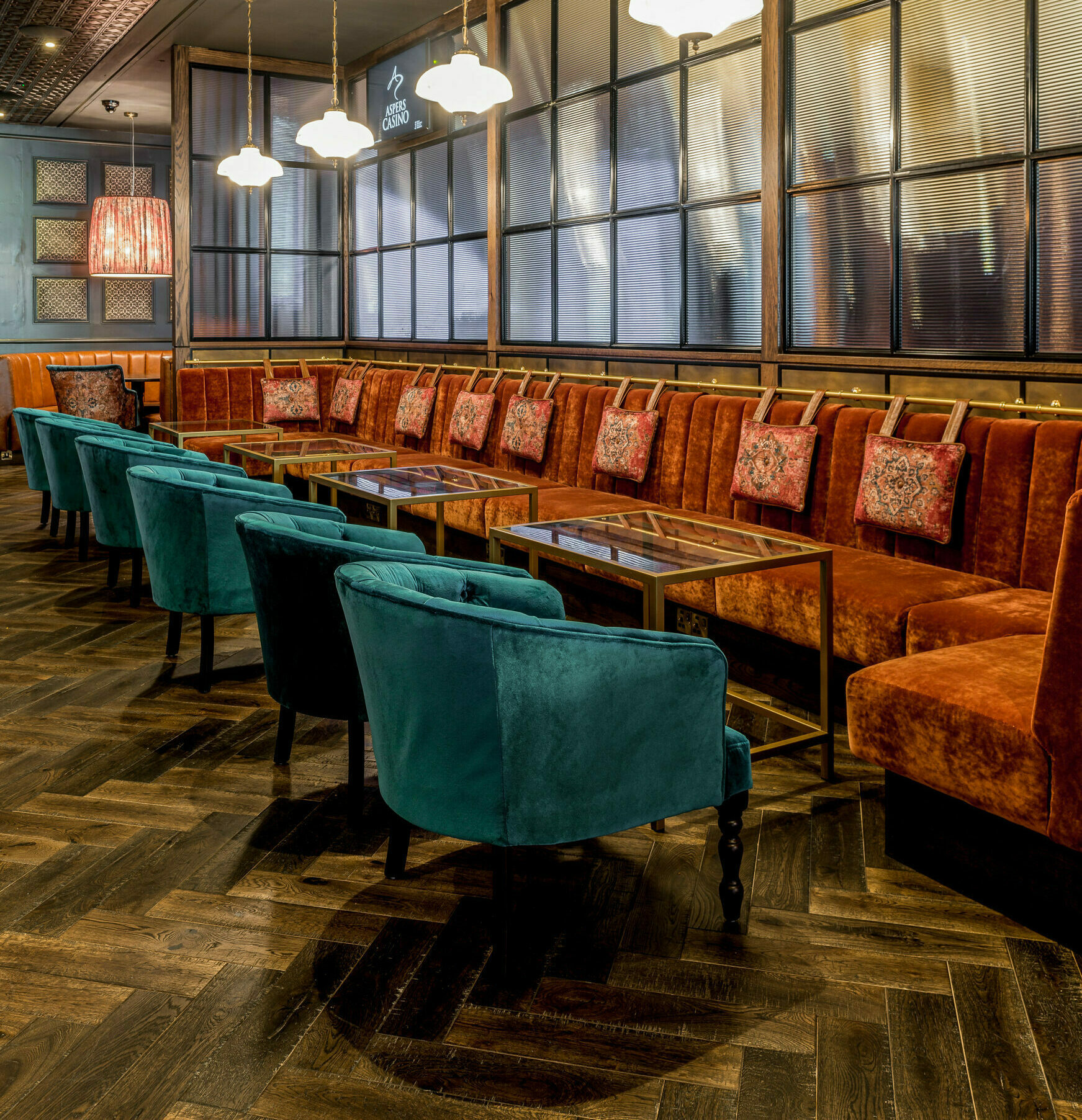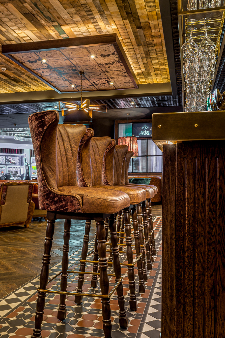 This project took us to Westfield Stratford, in East London, the home to London’s largest casino, and the busiest in the UK. Our team created a huge number of bespoke pieces for the new look Tanzibar at Aspers Casino.