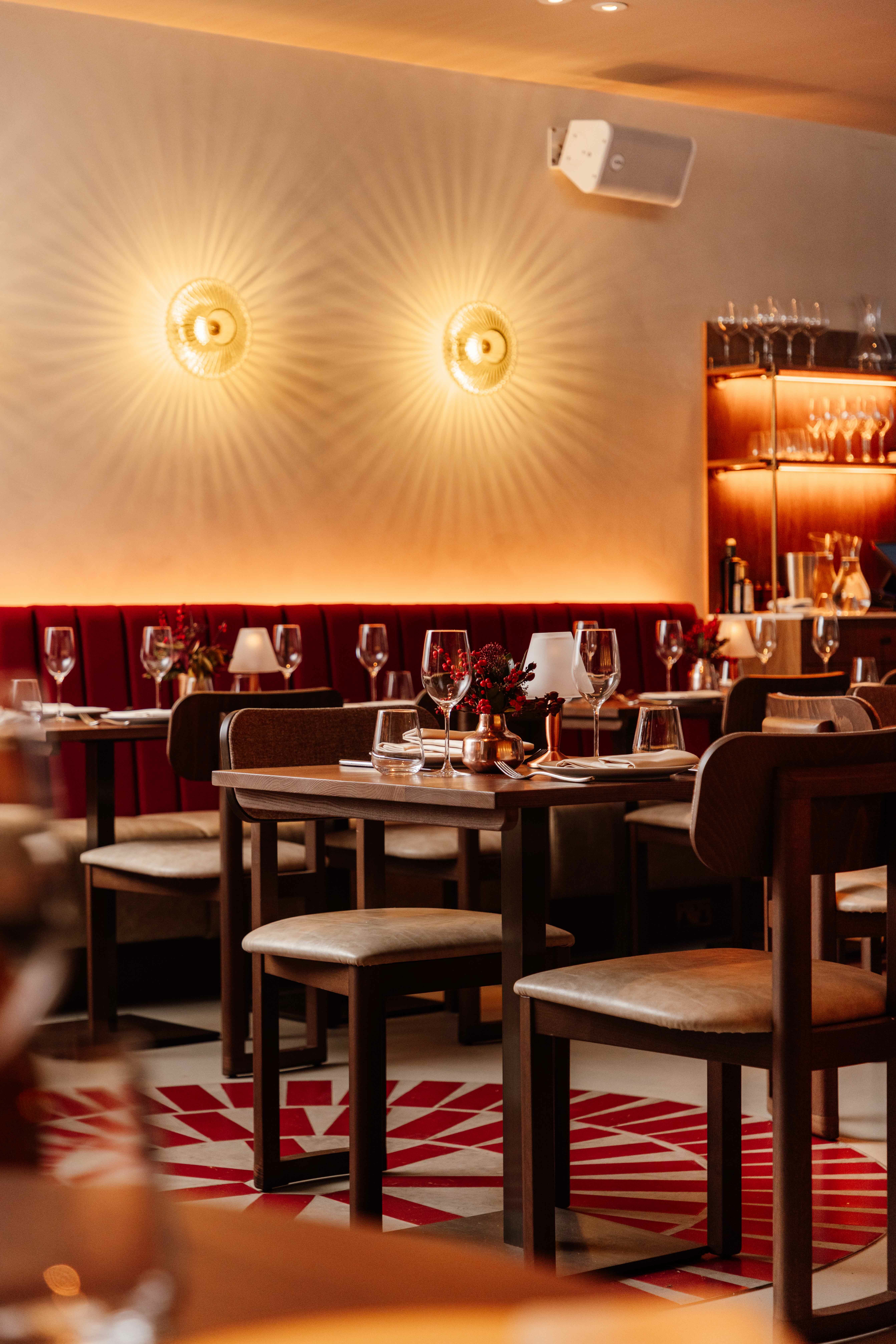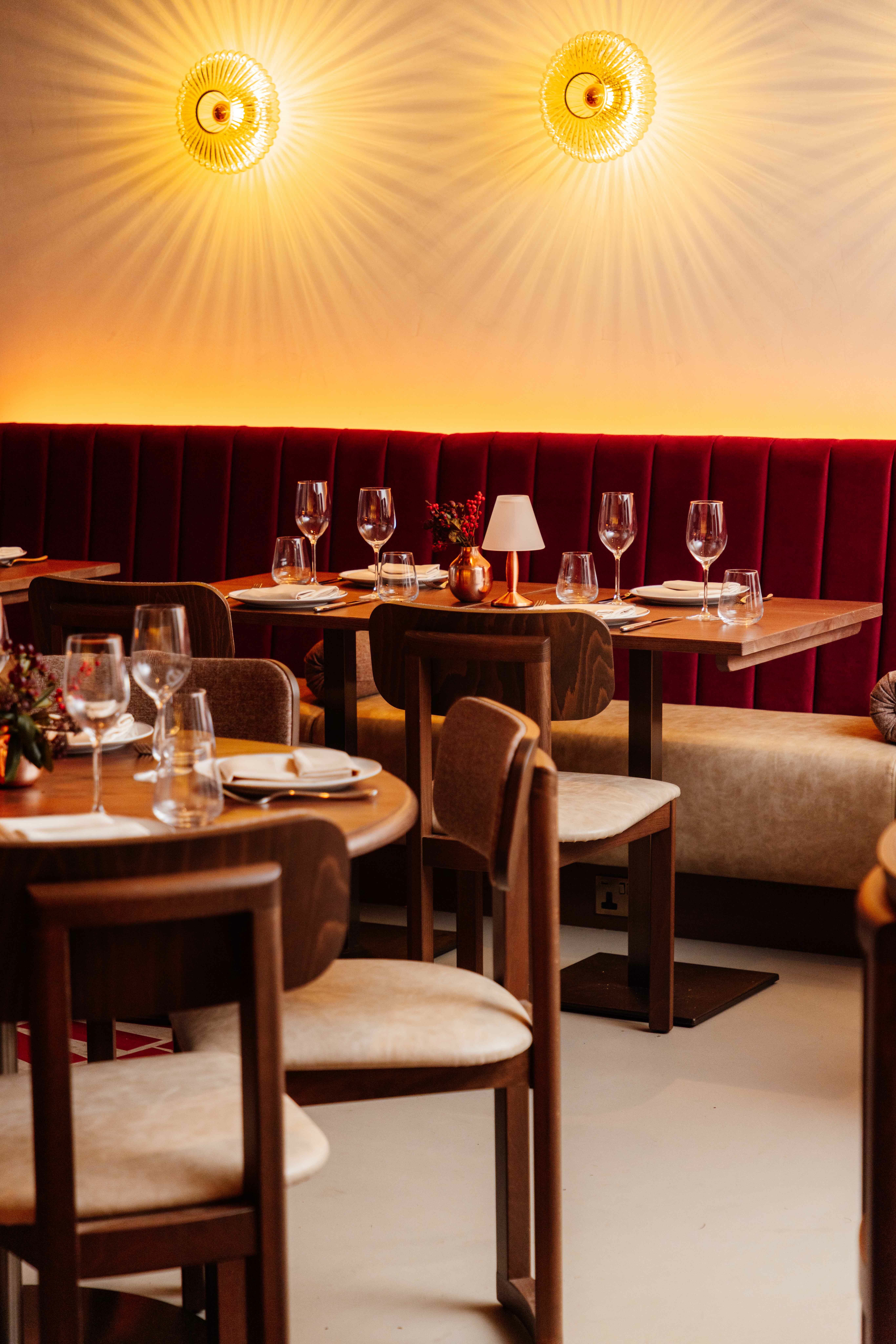 The new restaurant features our Chloe side chair throughout - new to our collection, this is the first time we’ve supplied this piece and think it will be a popular choice for restaurants, hotels and bars. The solid beech frame is stained to natural walnut which pairs perfectly with the fabric and faux leather used for the back and seat upholstery.