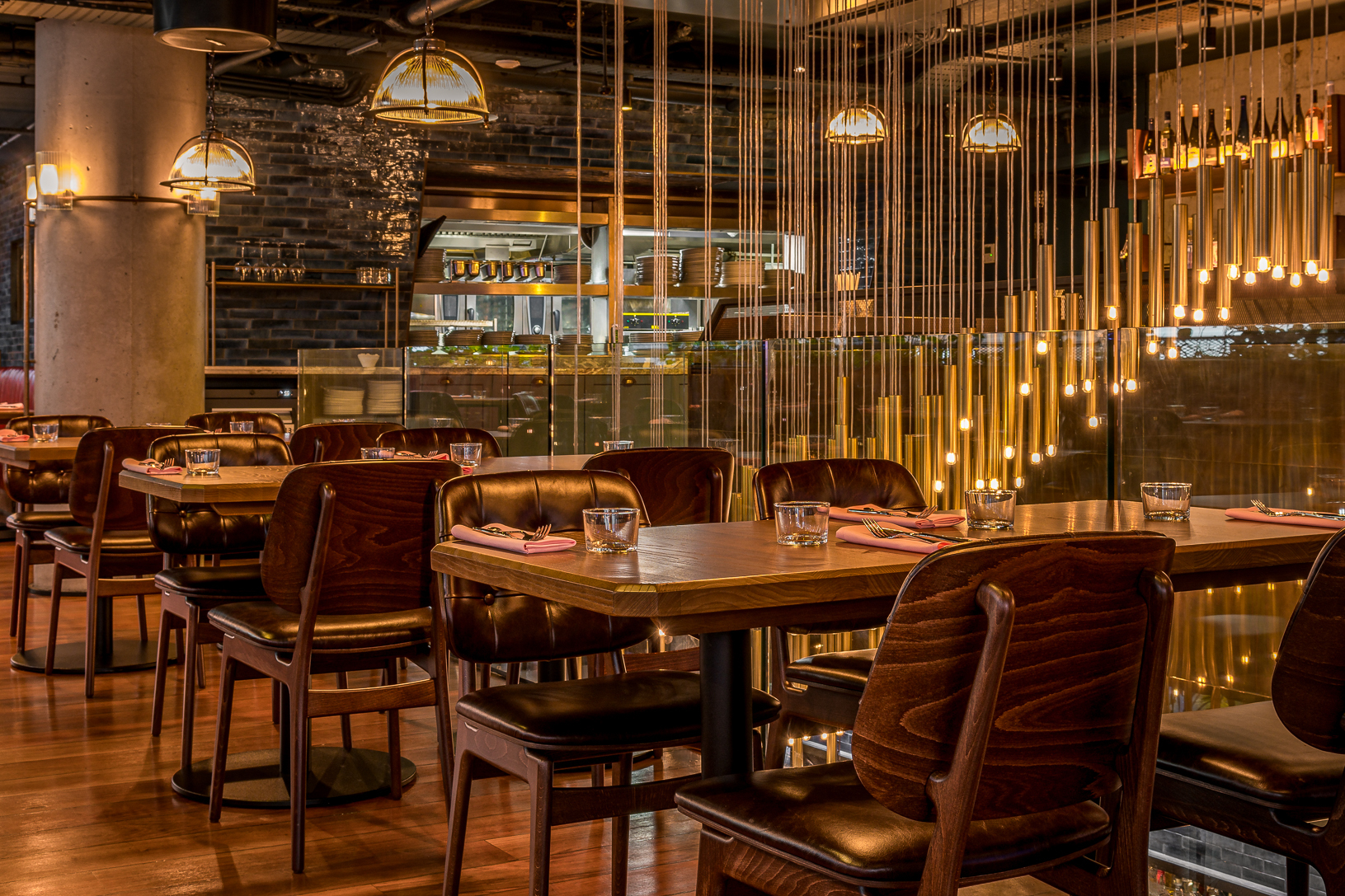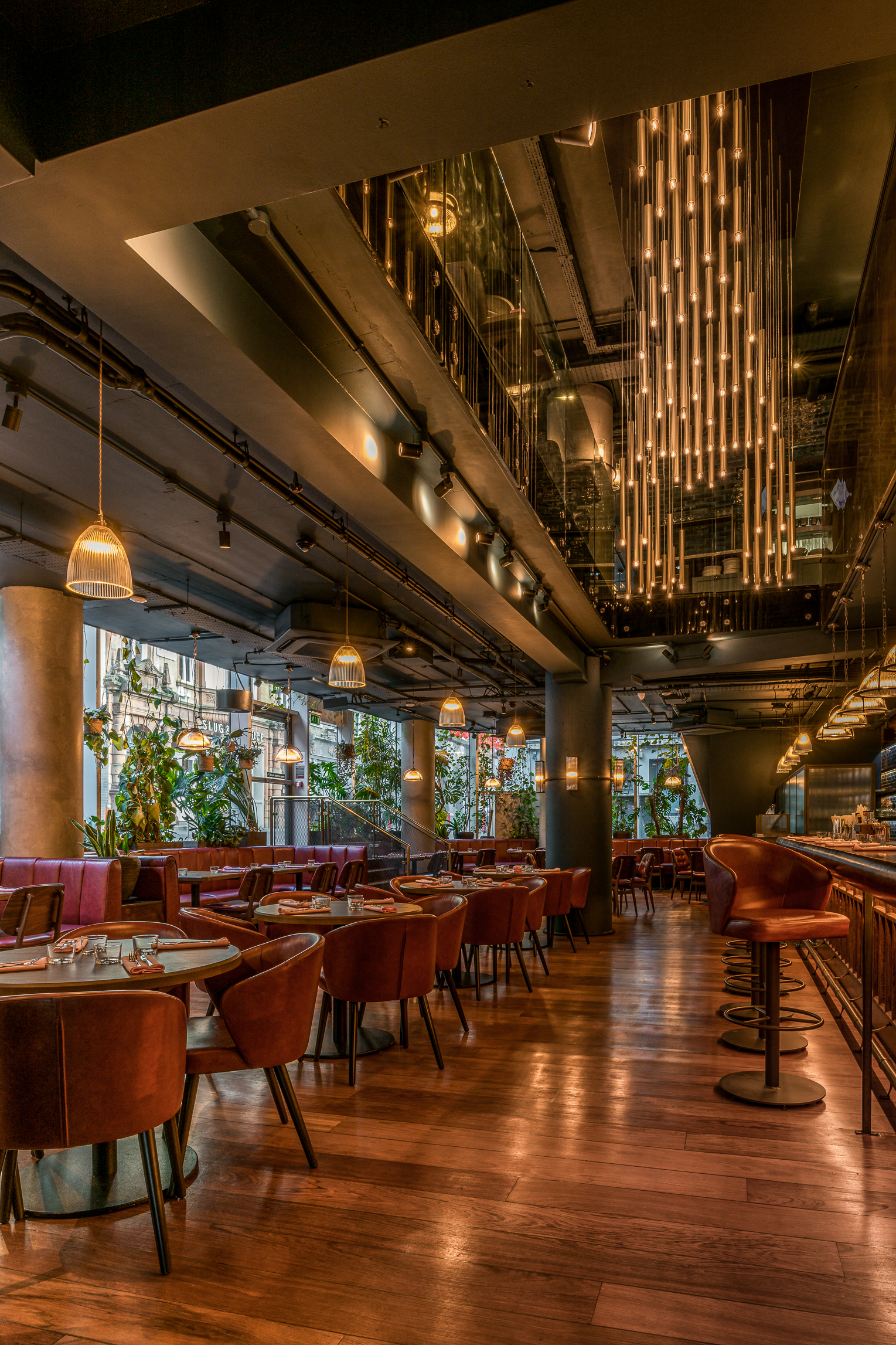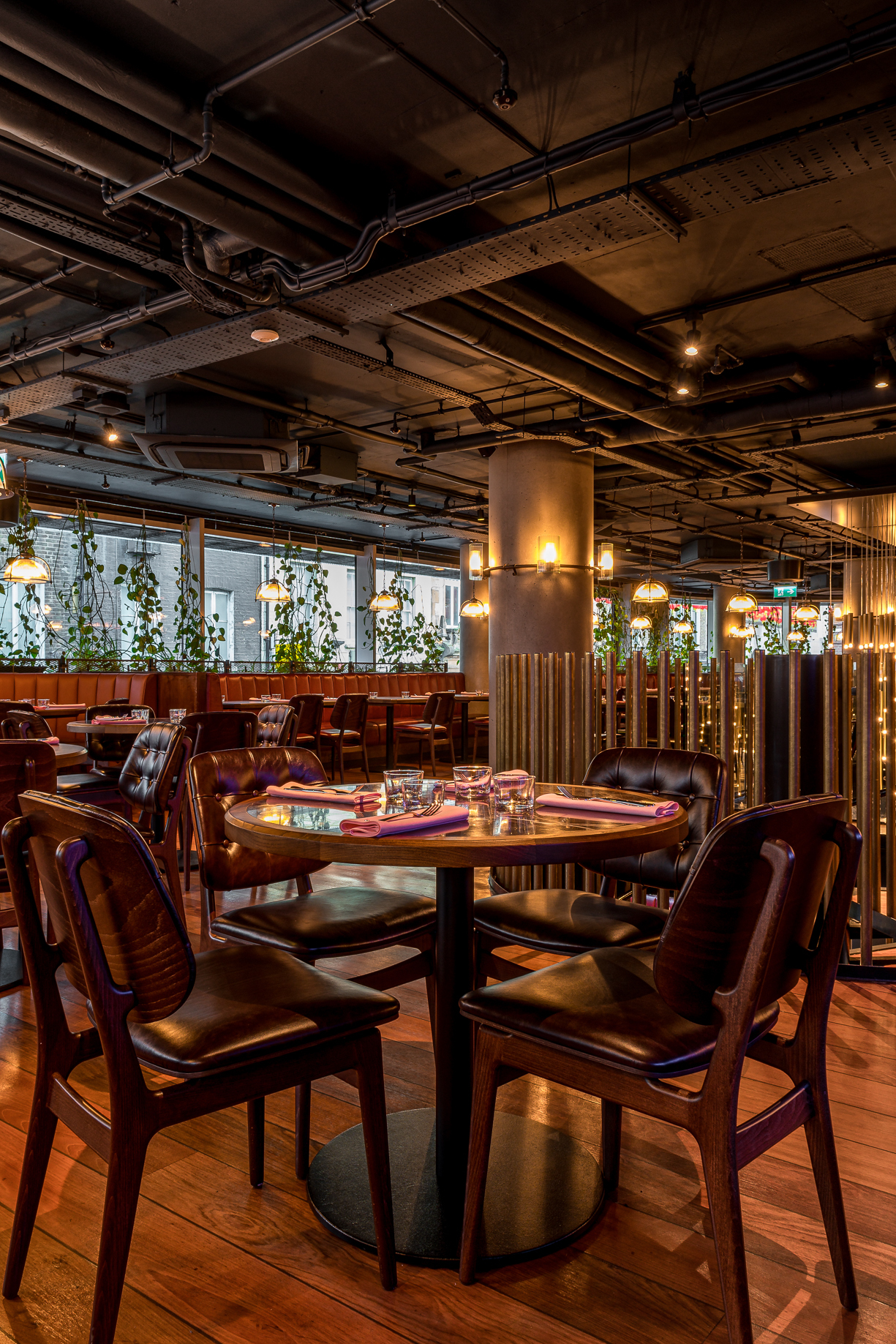 Following the Dean Street location, the next site to be completed is Leicester Square, in the stunning W Hotel building. This iconic address in the heart of Chinatown is home to a buzzy branch of Burger & Lobster, set over two floors, with an industrial feel to the design.