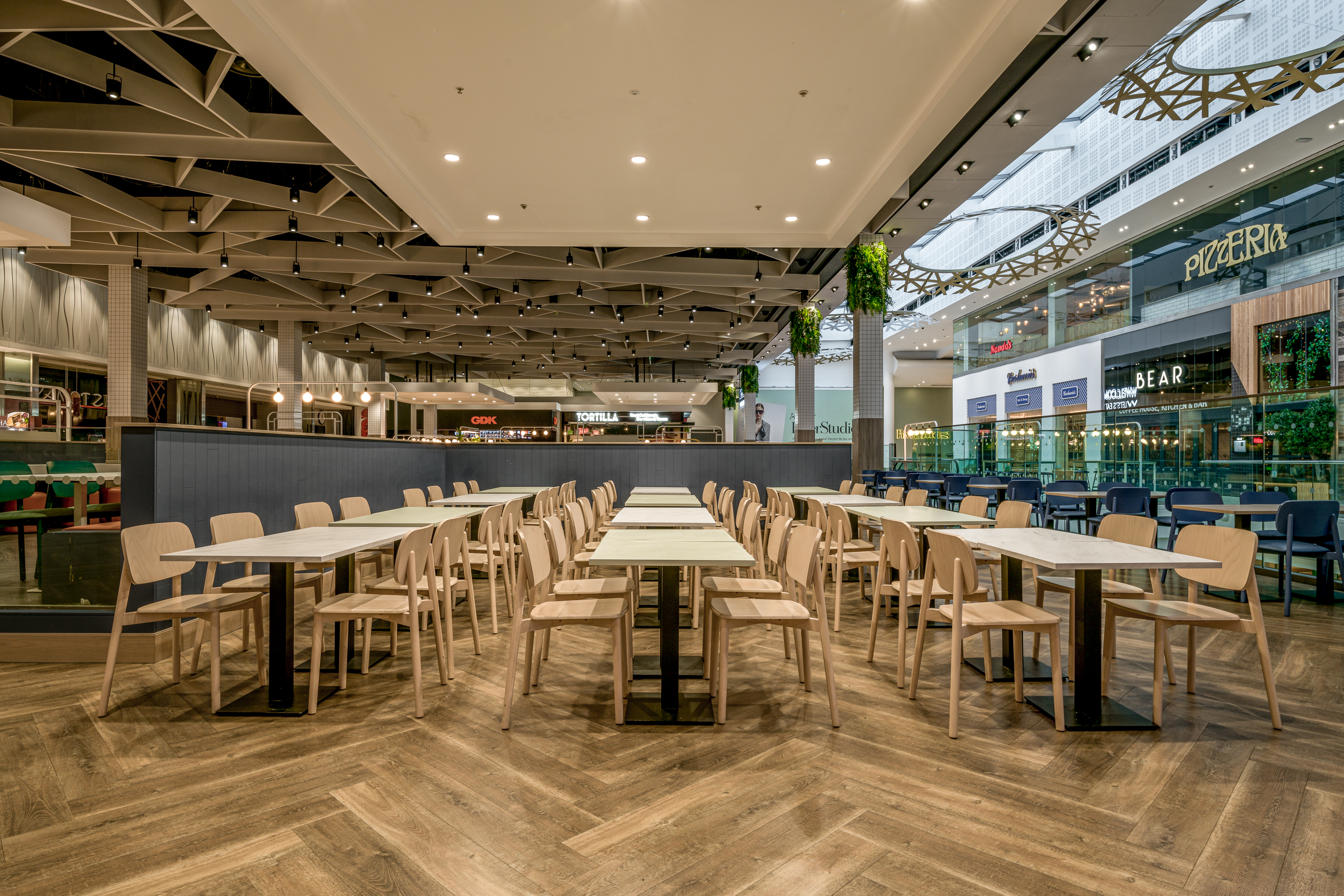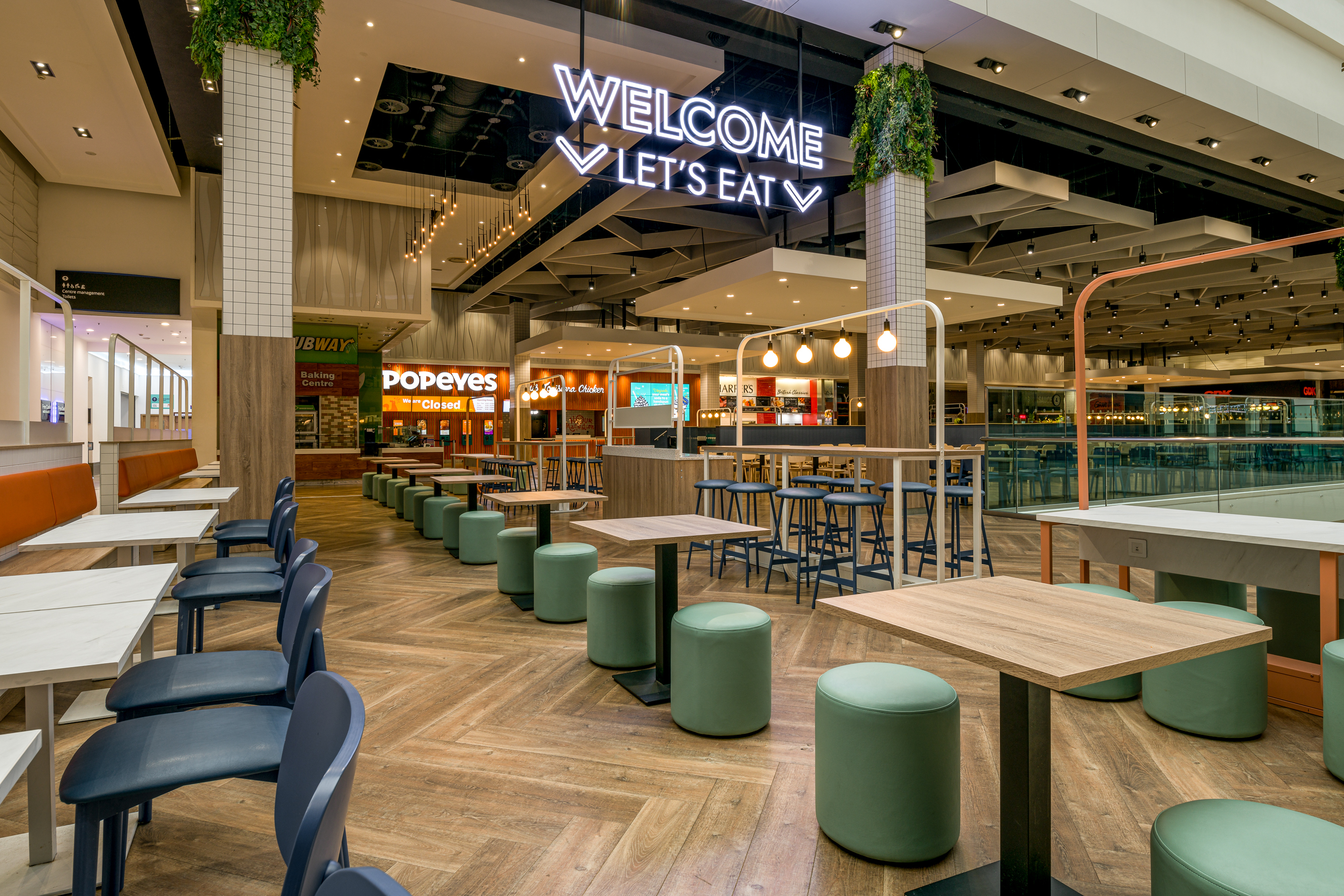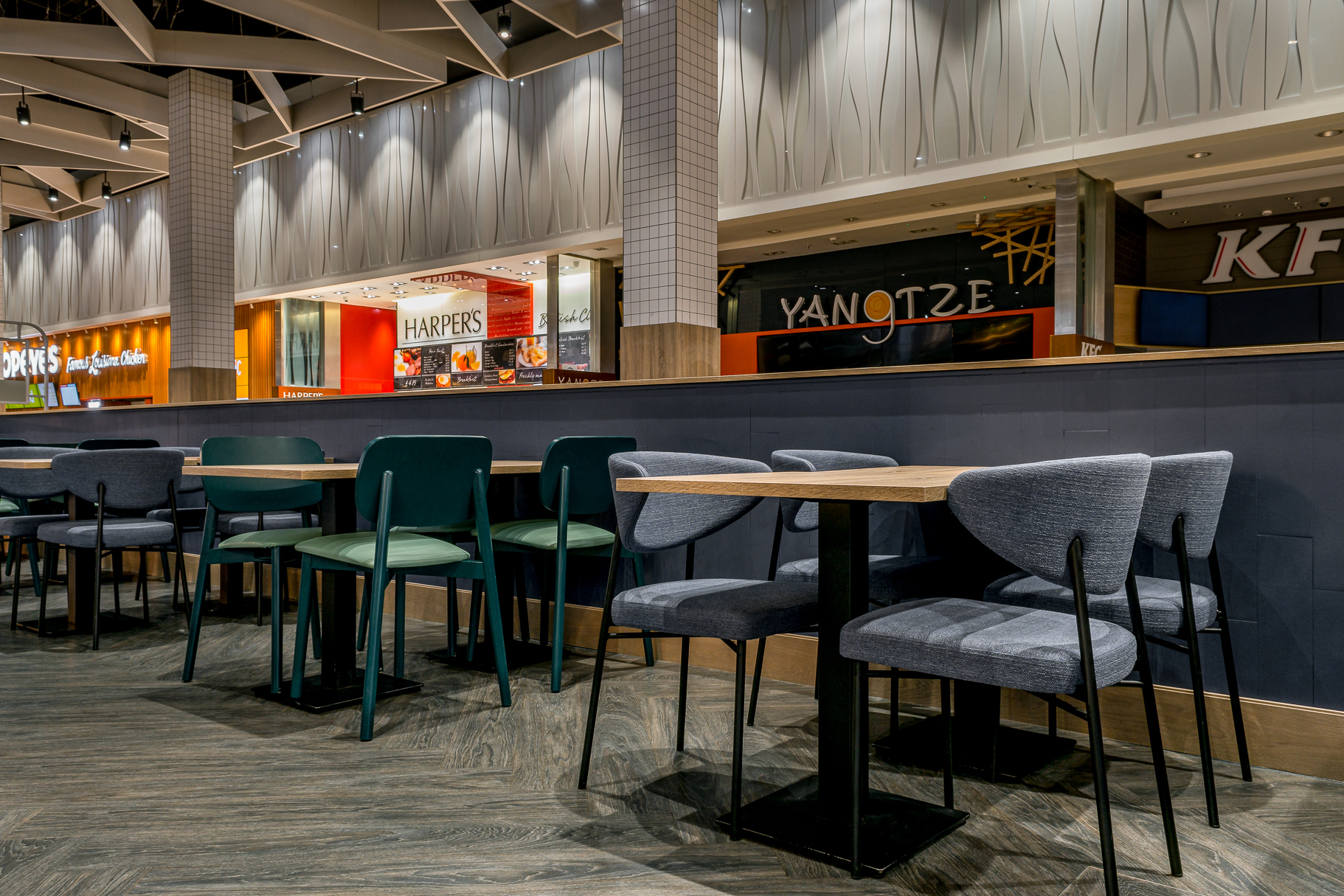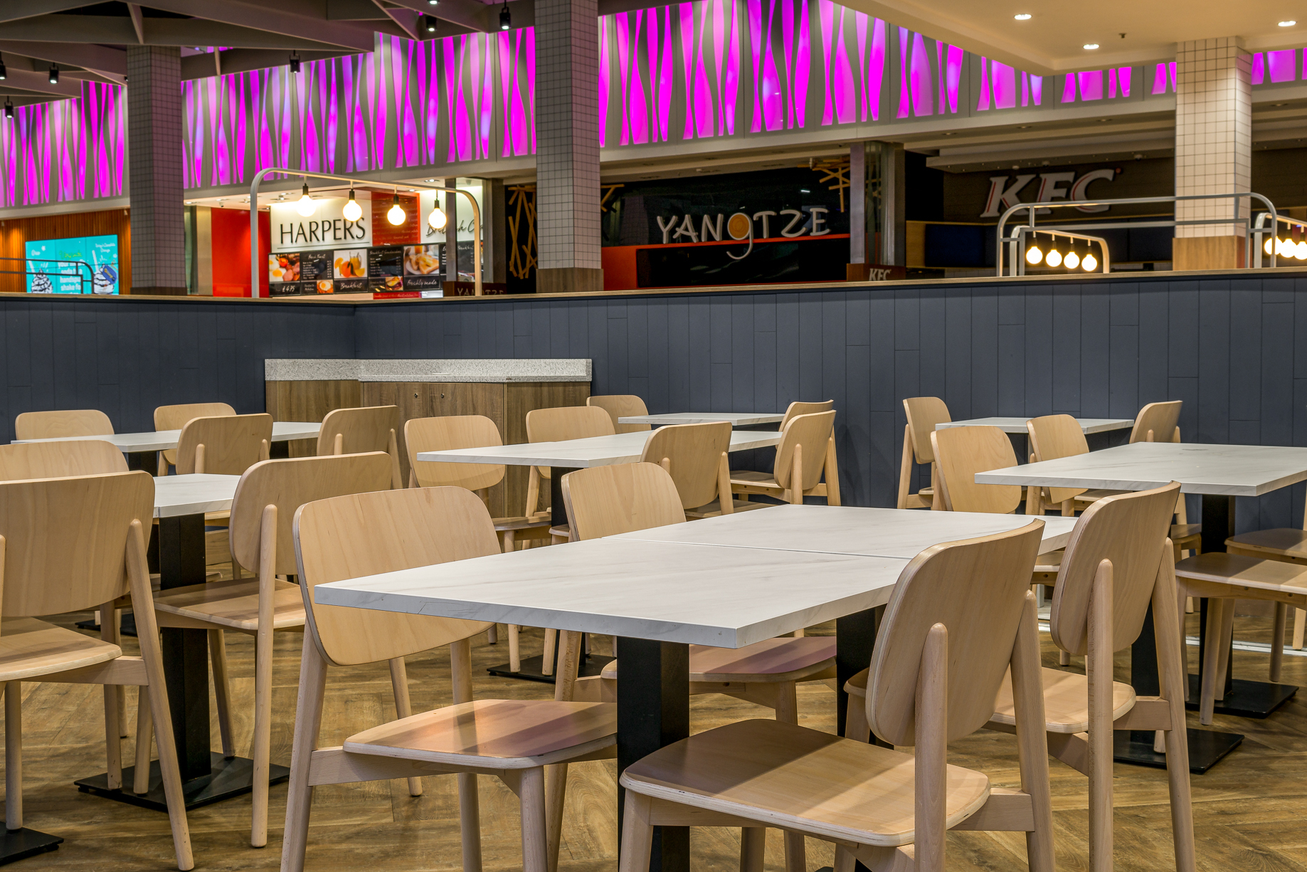 The food court is a busy, high traffic part of the centre so it was essential that the furniture supplied could withstand high usage, as well as looking great.