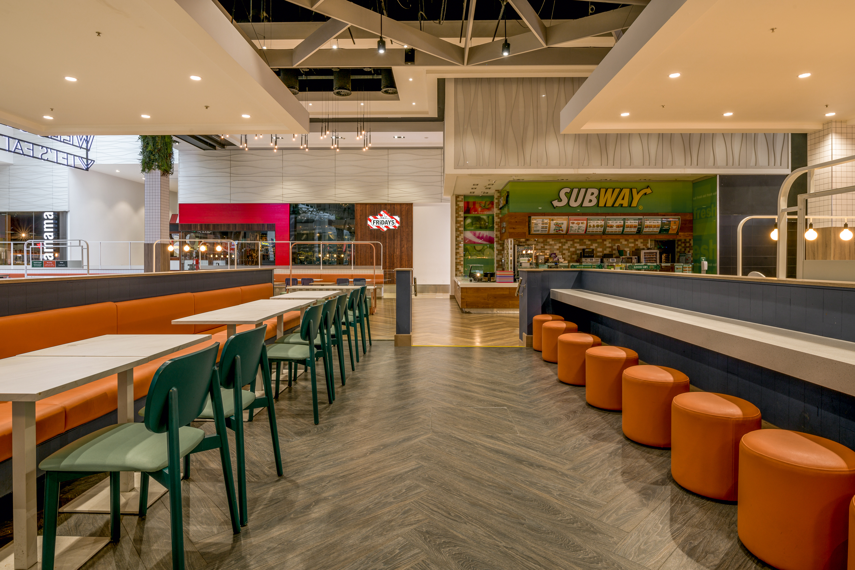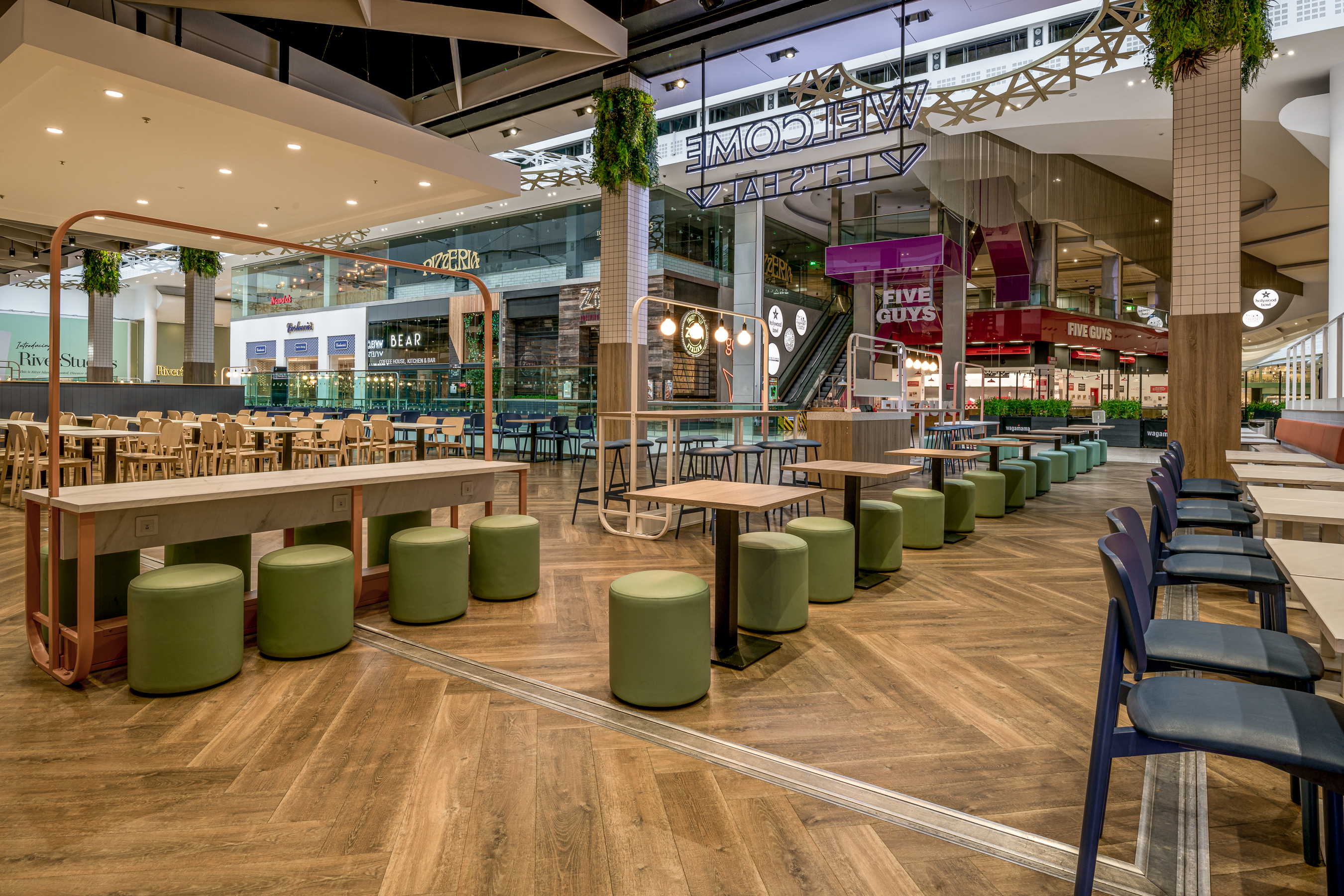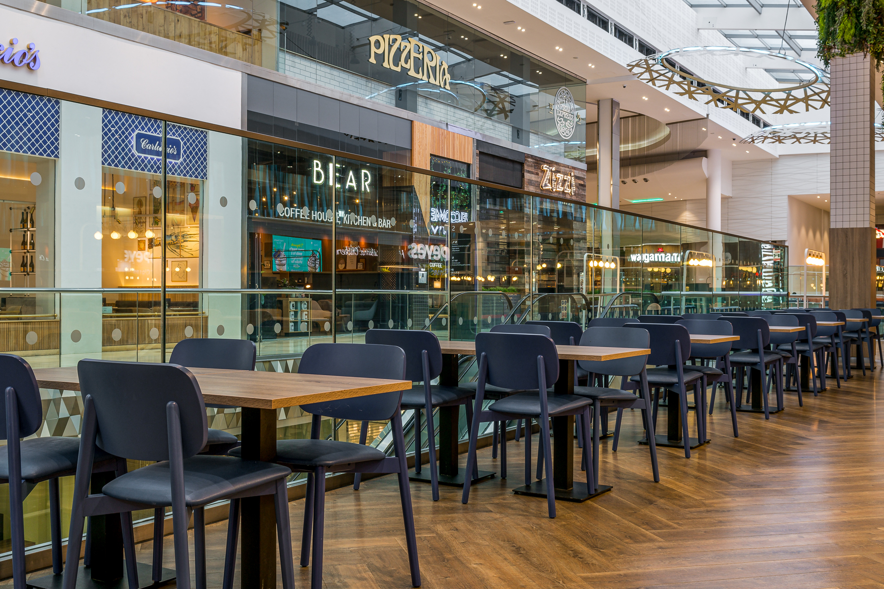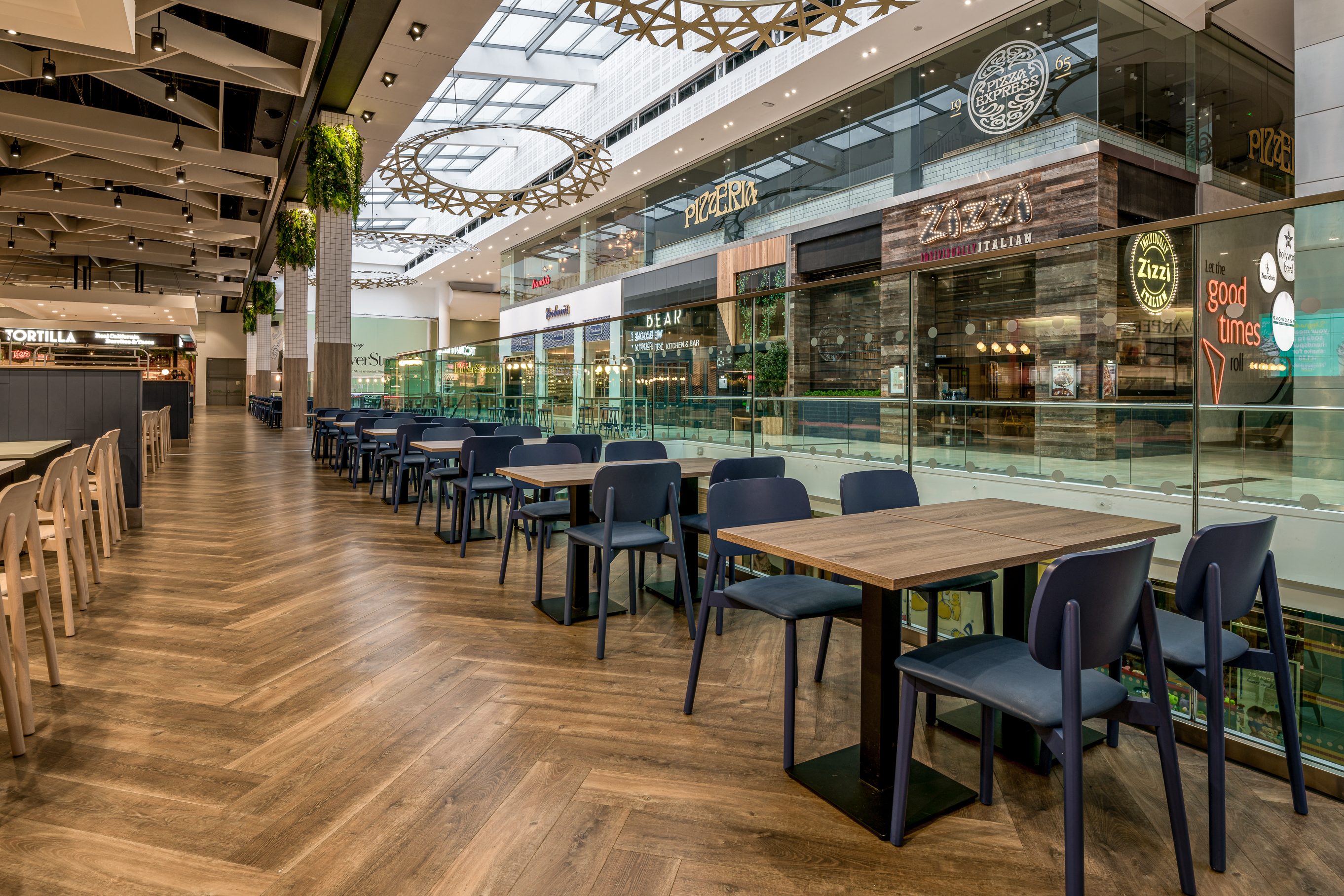 The food court is a busy, high traffic part of the centre so it was essential that the furniture supplied could withstand high usage, as well as looking great.