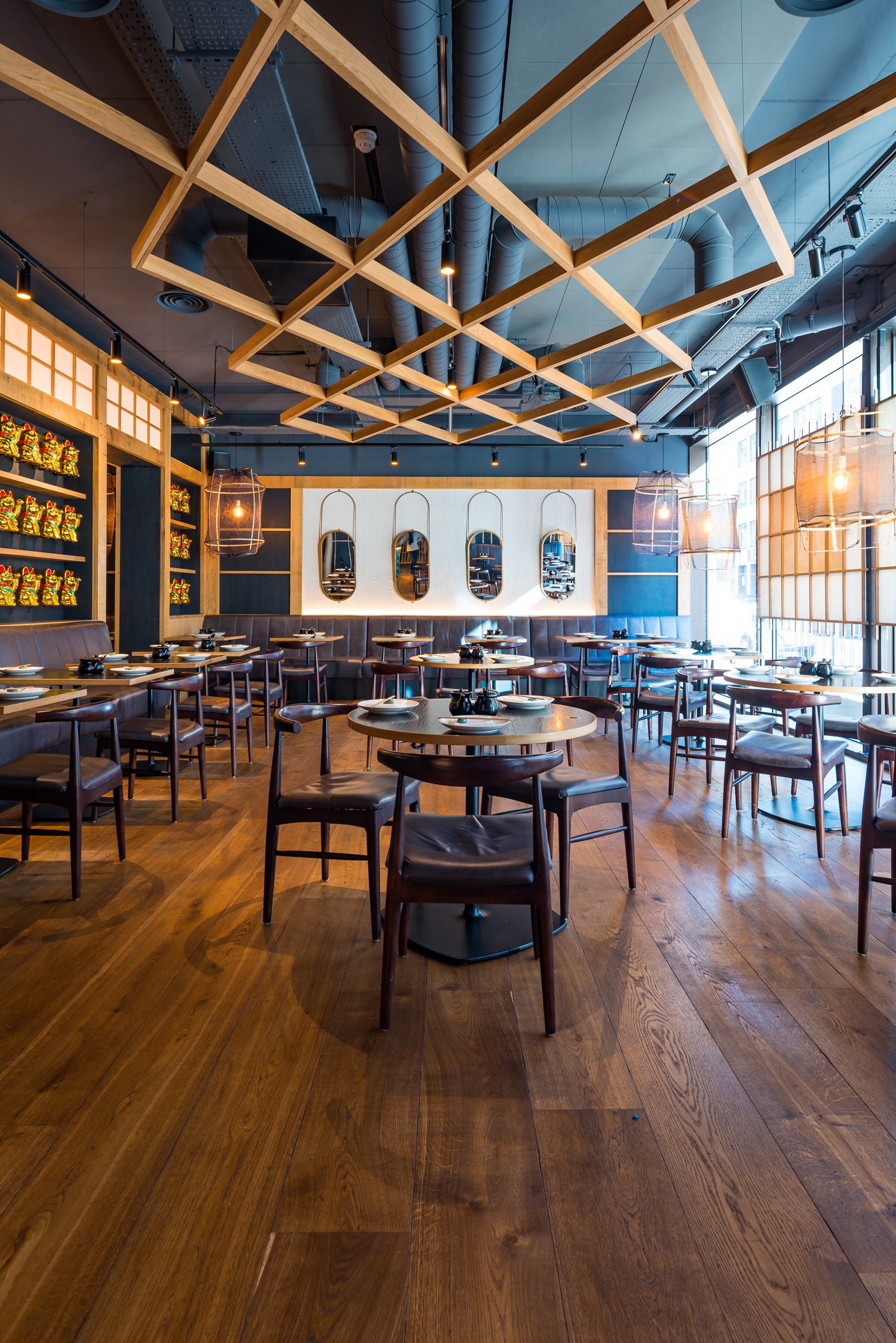 Located in upscale Fitzrovia, Flesh & Buns stays true to the traditional ‘izikaya’ Japanese pub concept with modern Japanese cuisine, great drinks and old school rock music. The interior is warm, bringing together wood, leather and metal to create an authentic feel, with an open kitchen to add atmosphere and buzz.