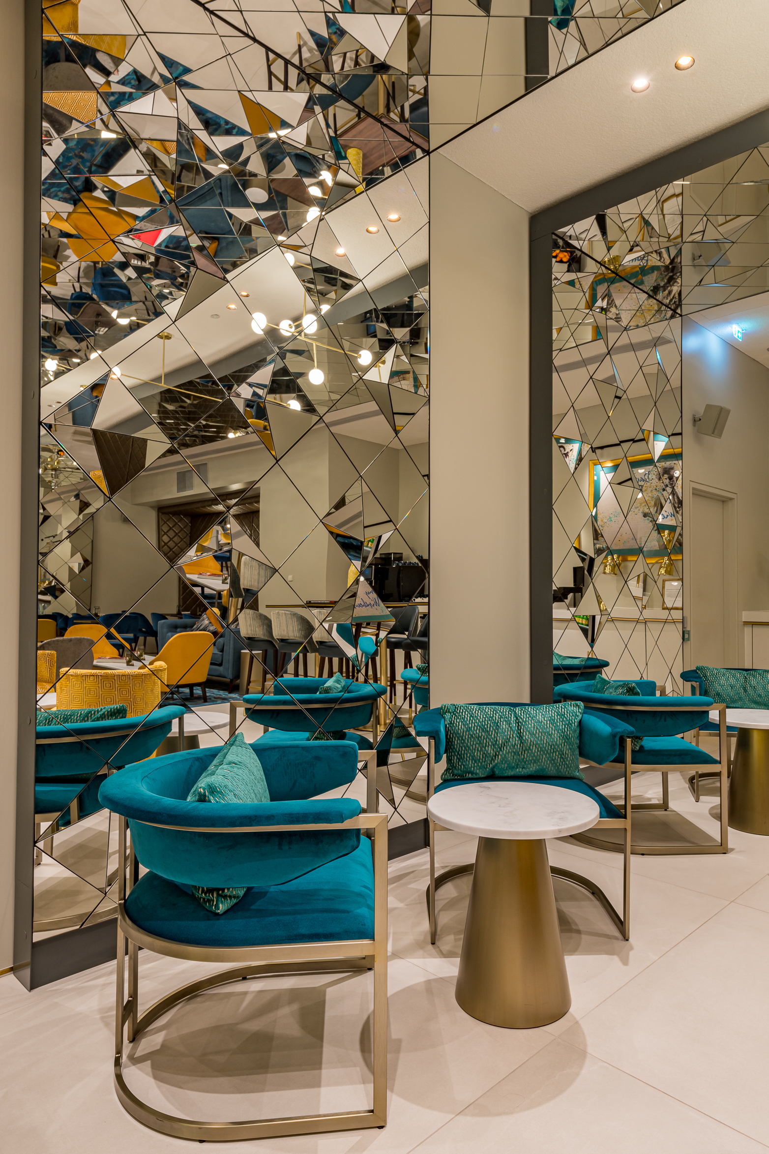 With a deep back catalogue of experience to draw on, we relished the opportunity to show some artistic flair in our designs for the hotel. Several bespoke pieces were created, including plush velvet bar stools and lounge chairs, and sleek tables with marble and brass finishes, which strike a stylish note in this spectacular setting.