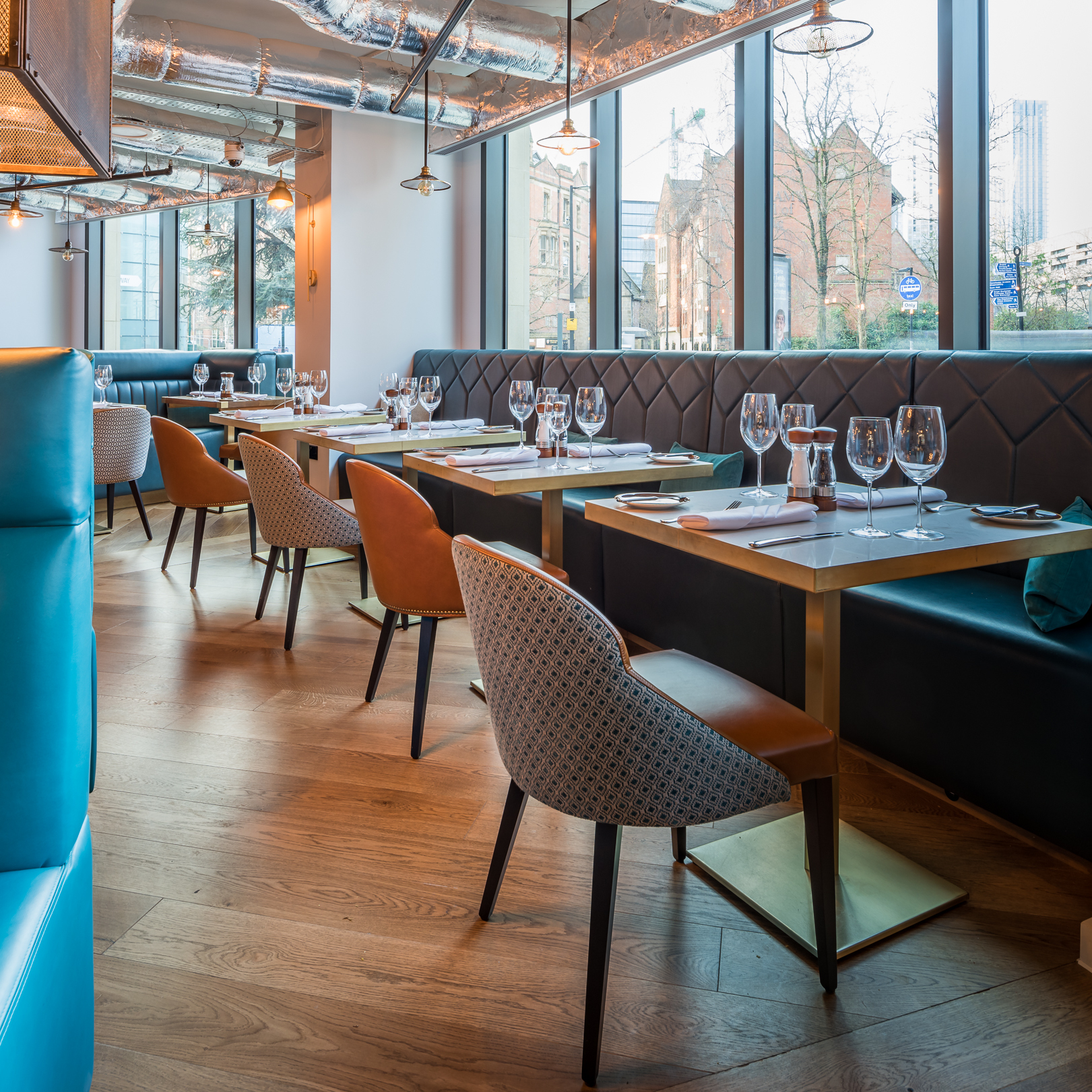 The Mamucium Restaurant at the Hotel Indigo Manchester is inspired by the city, with everything on the menu sourced locally. The same attention to detail is present in the interior design, with earthy tones and teal shades, brass and wood, leather and fabric, coming together to create a relaxed, elegant space that welcomes guests throughout the day.