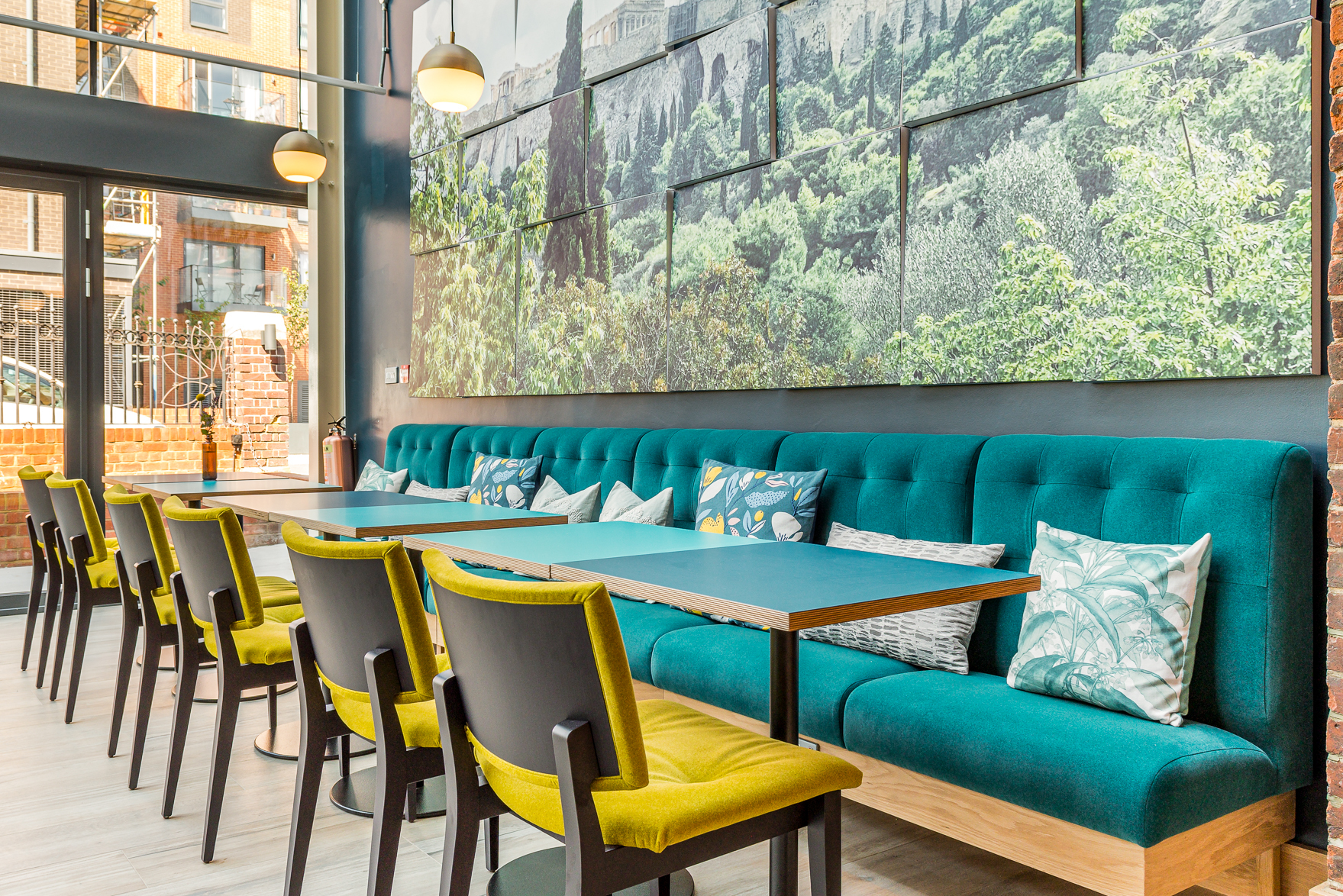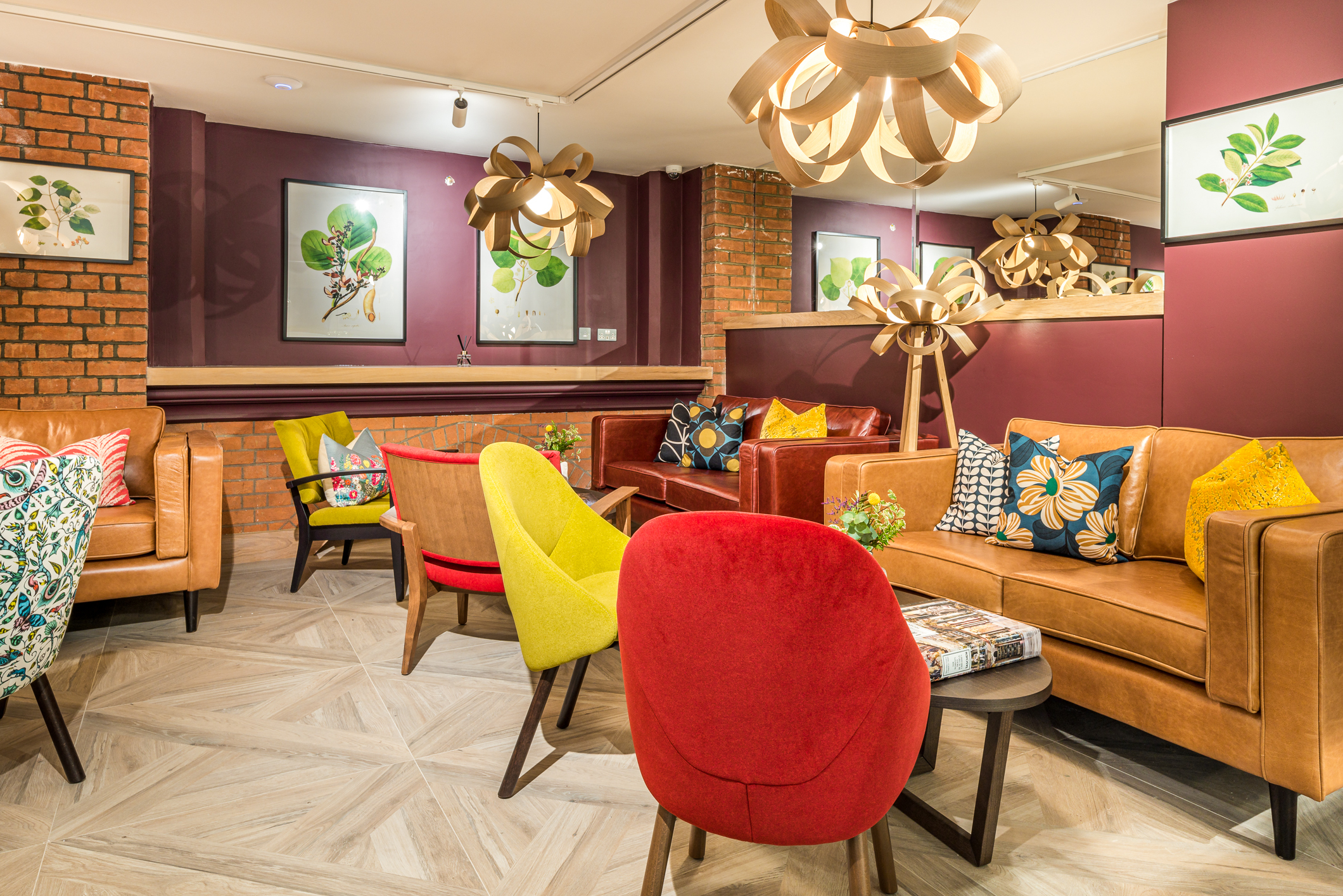 We always love an opportunity to create a bespoke piece, so we were delighted to supply a several bespoke sofas for Natural Fit Hove. Some are upholstered in rich tan and brown leather and others in the same signature acid-bright fabrics seen elsewhere in the venue.