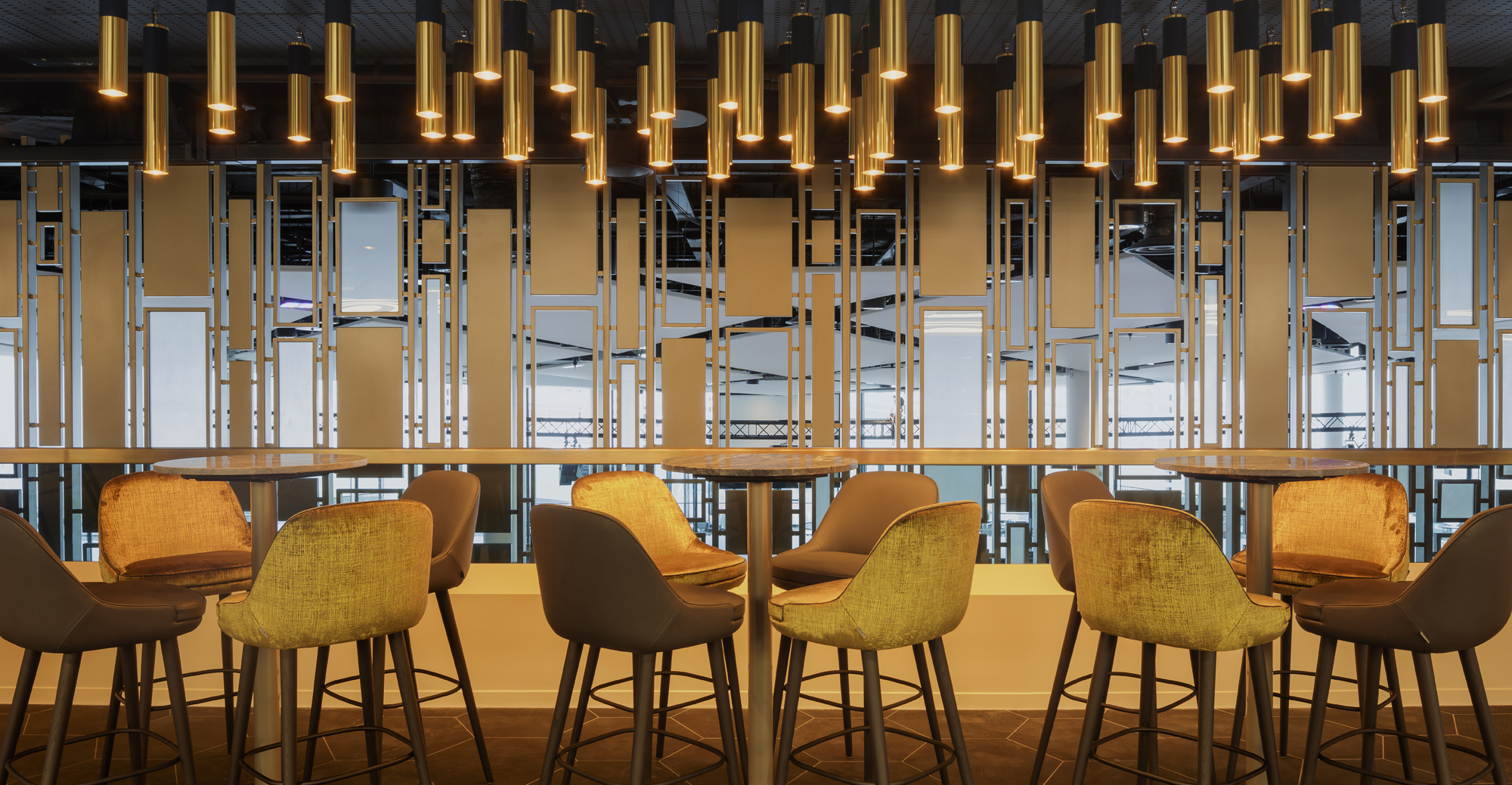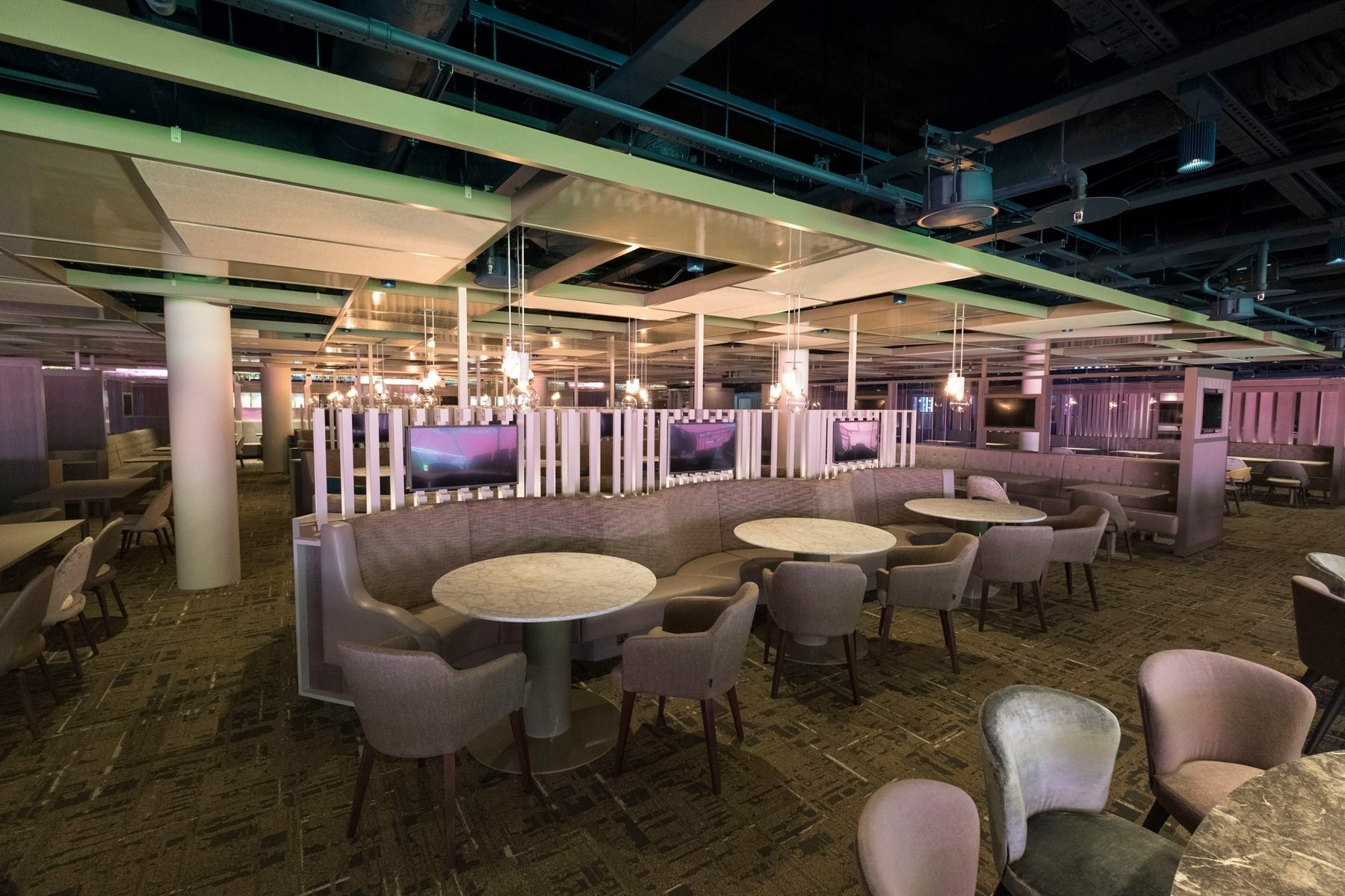 As part of a major refurbishment, Furniture Fusion was appointed to deliver over 150 tables and bases in a range of heights, sizes and finishes. The refurbishment was carried out with high-end products in mind, using only branded furniture, the best fabrics and unique materials. The room was divided into spaces, with small furniture clusters and swivel chairs, giving guests privacy, yet it kept an airy feel, with the pitch visible from most of the room.
