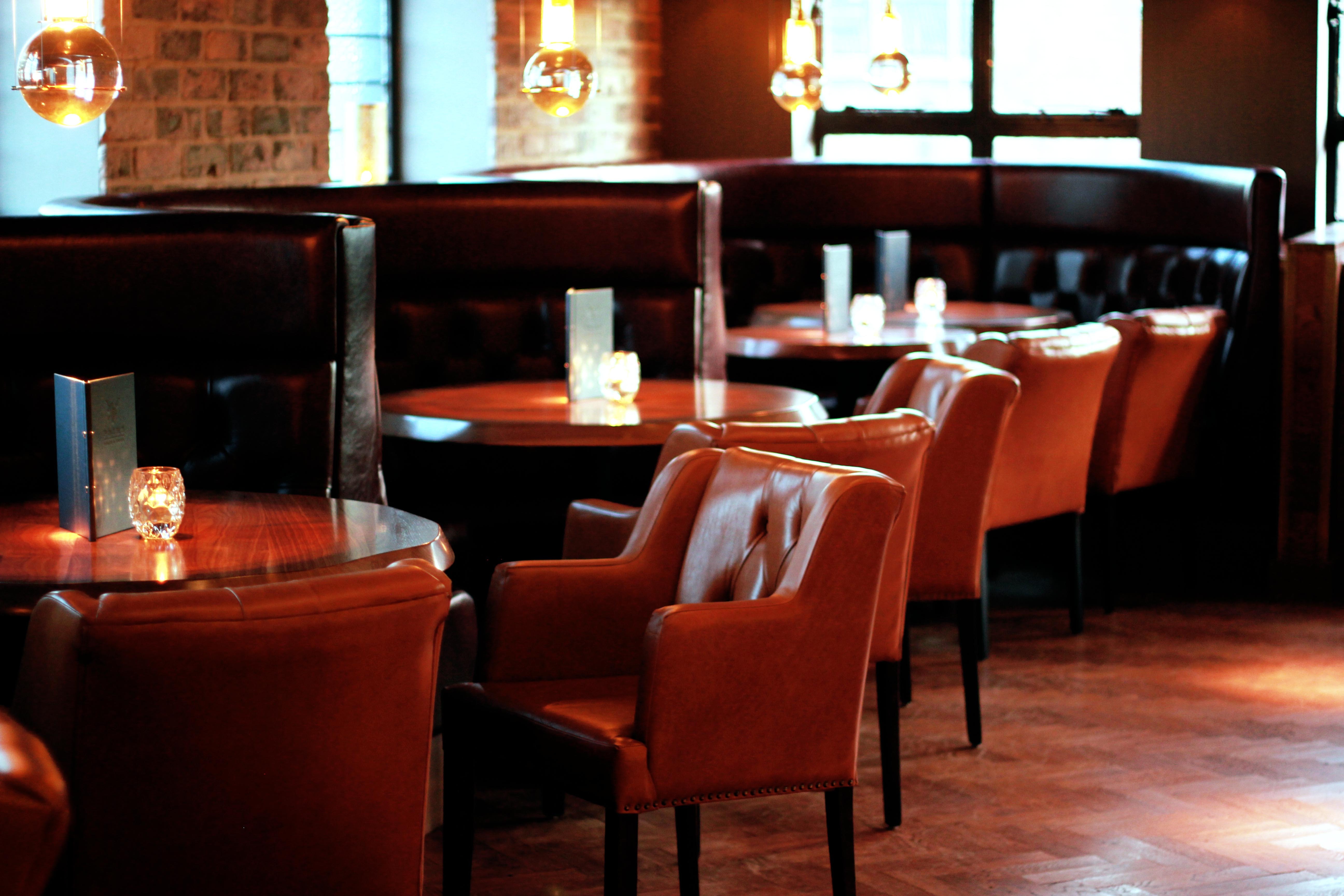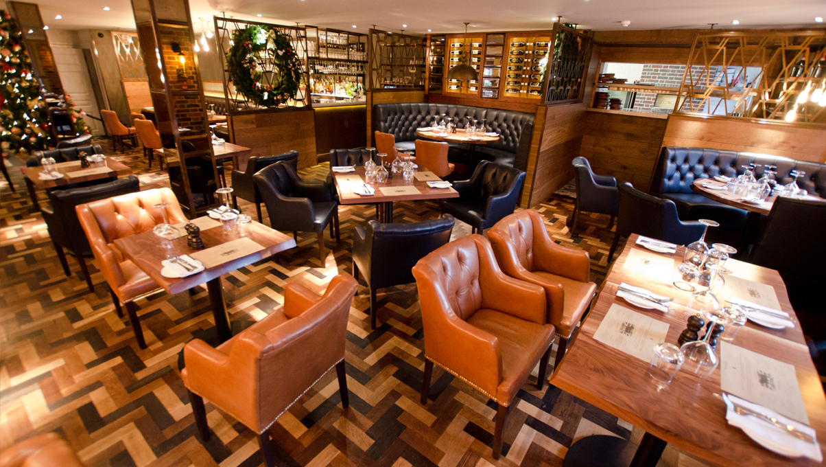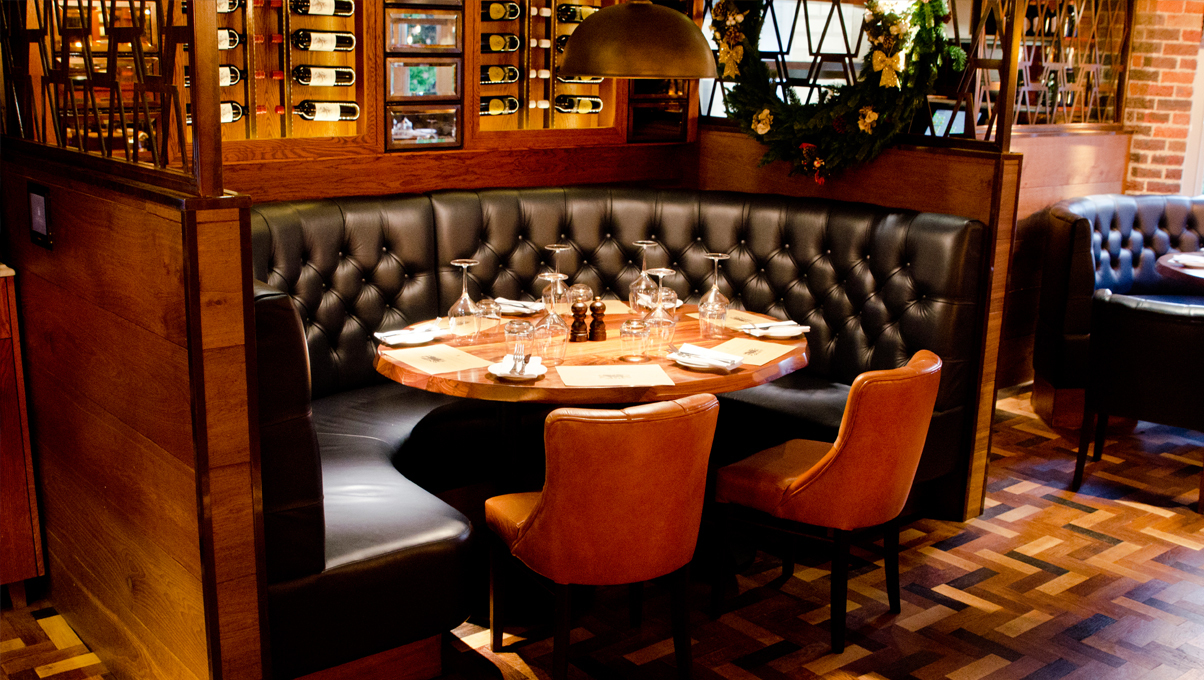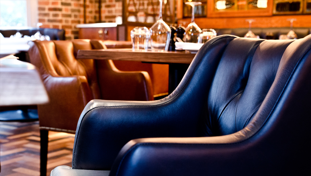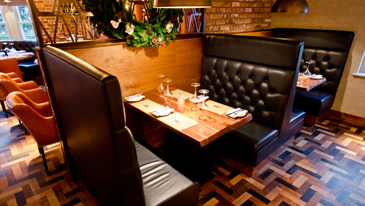 We worked on all three projects from their initial interior design phases through to furniture design, supply and installation, including the creation of a range of bespoke contract furniture from leather-covered chairs to custom-made table tops in solid walnut with a waney edge. Each restaurant also features our bespoke deep button fitted seating in alcoves and booths.