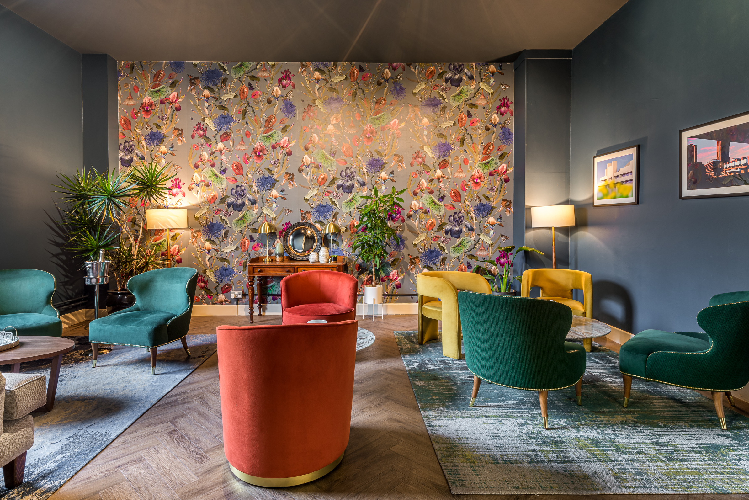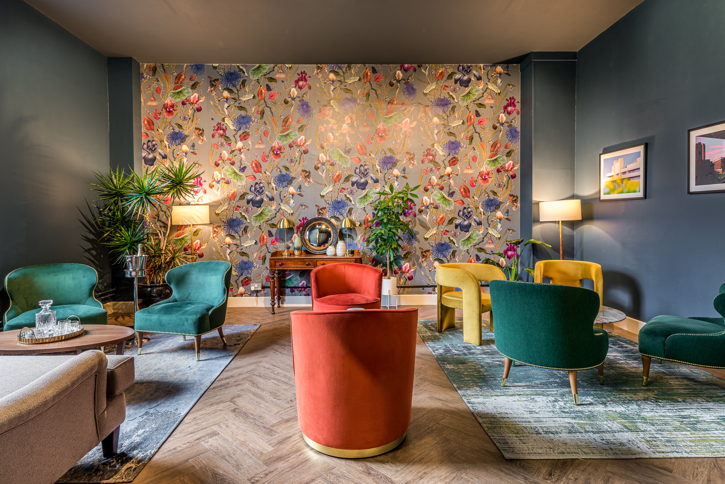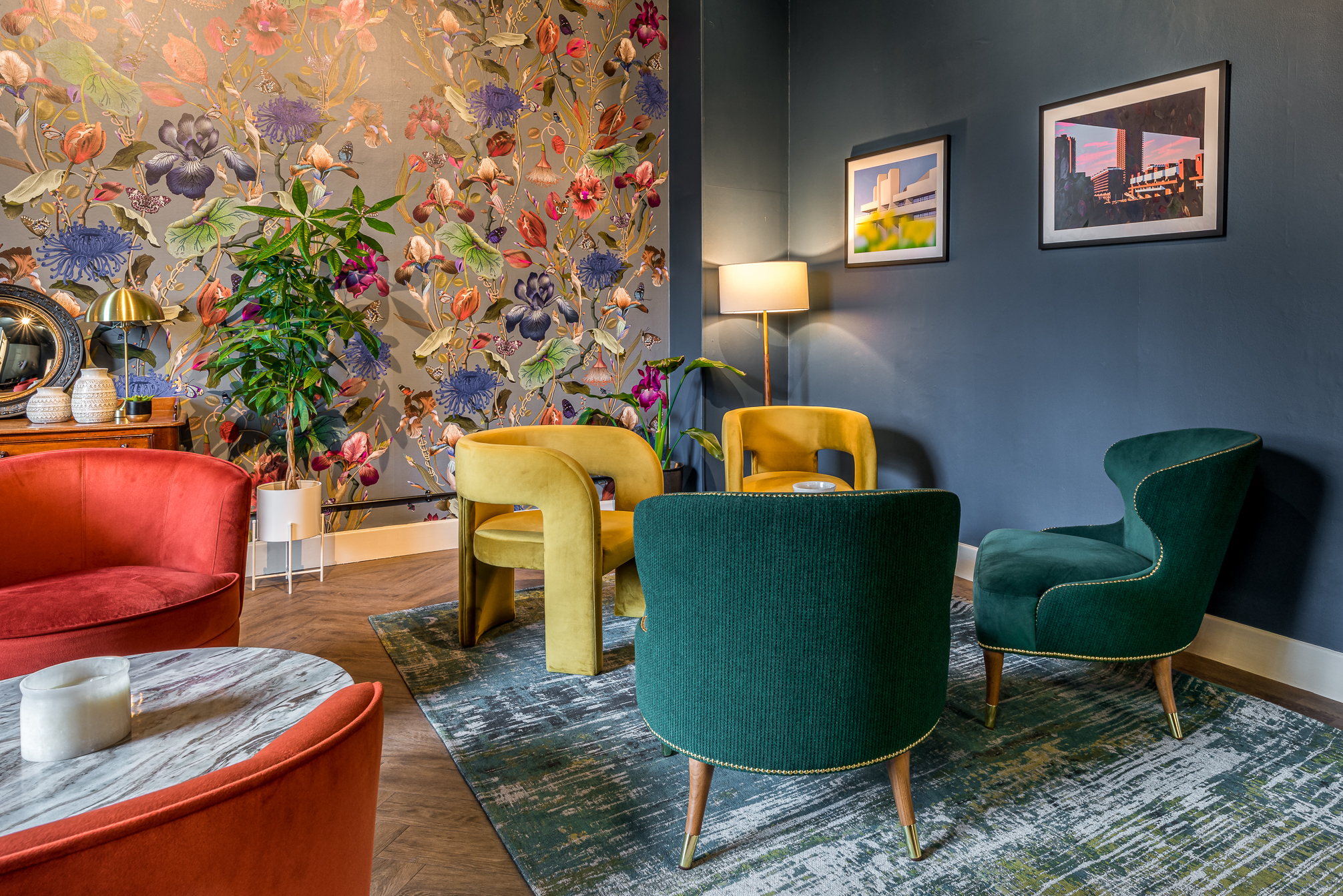 The Welcome Lounge sets a striking first impression for visitors - it’s spacious and airy, and now comfortable and stylish too. We supplied bespoke sofas, lounge chairs and marble-topped tables, upholstered in jewel-toned velvets which work perfectly with the dark paintwork and statement wall-covering.
